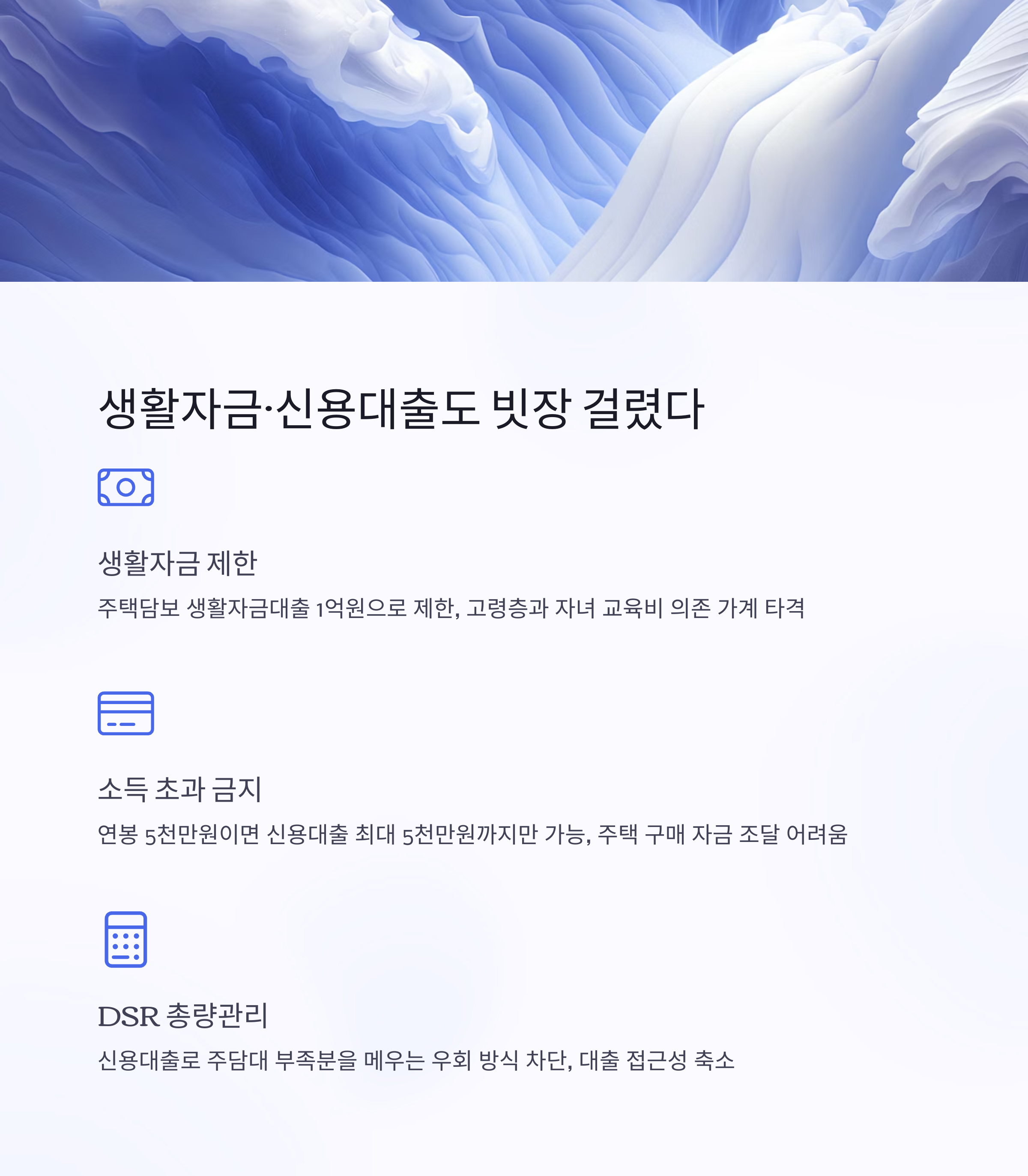 "강남 재건축 아파트를 사려던 30대 직장인 김민수 씨는 결국 고개를 떨궜다. 기존엔 가능했던 9억짜리 주택 매입이, 대출 한도 6억 제한으로 물거품이 된 것이다."