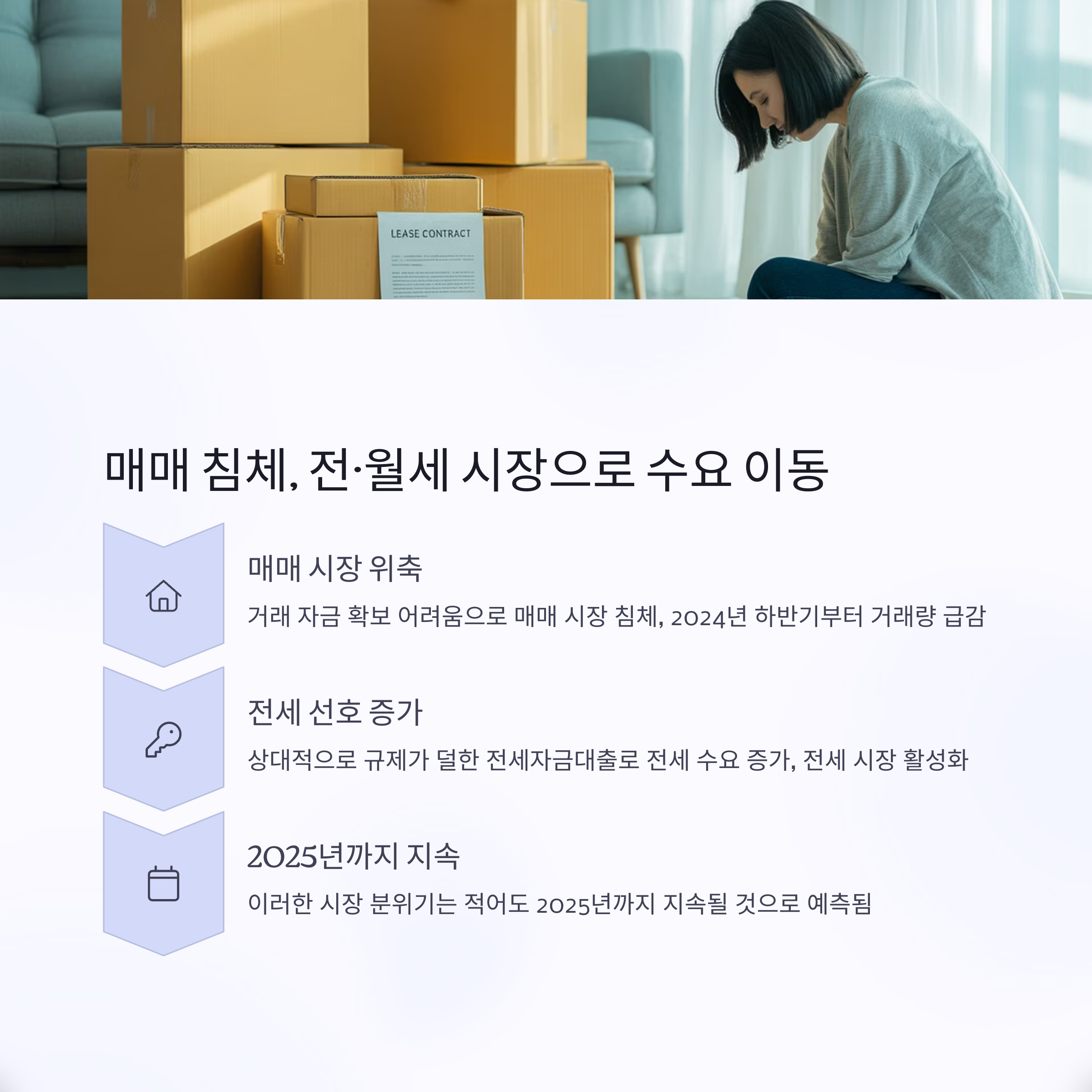 거래 자금 확보가 어려워지면서 매매보다는 전세나 월세로 수요가 옮겨갈 가능성이 높습니다. 특히, 전세자금대출은 상대적으로 규제가 덜하다는 점에서 '전세 선호' 현상이 당분간 이어질 수 있습니다.