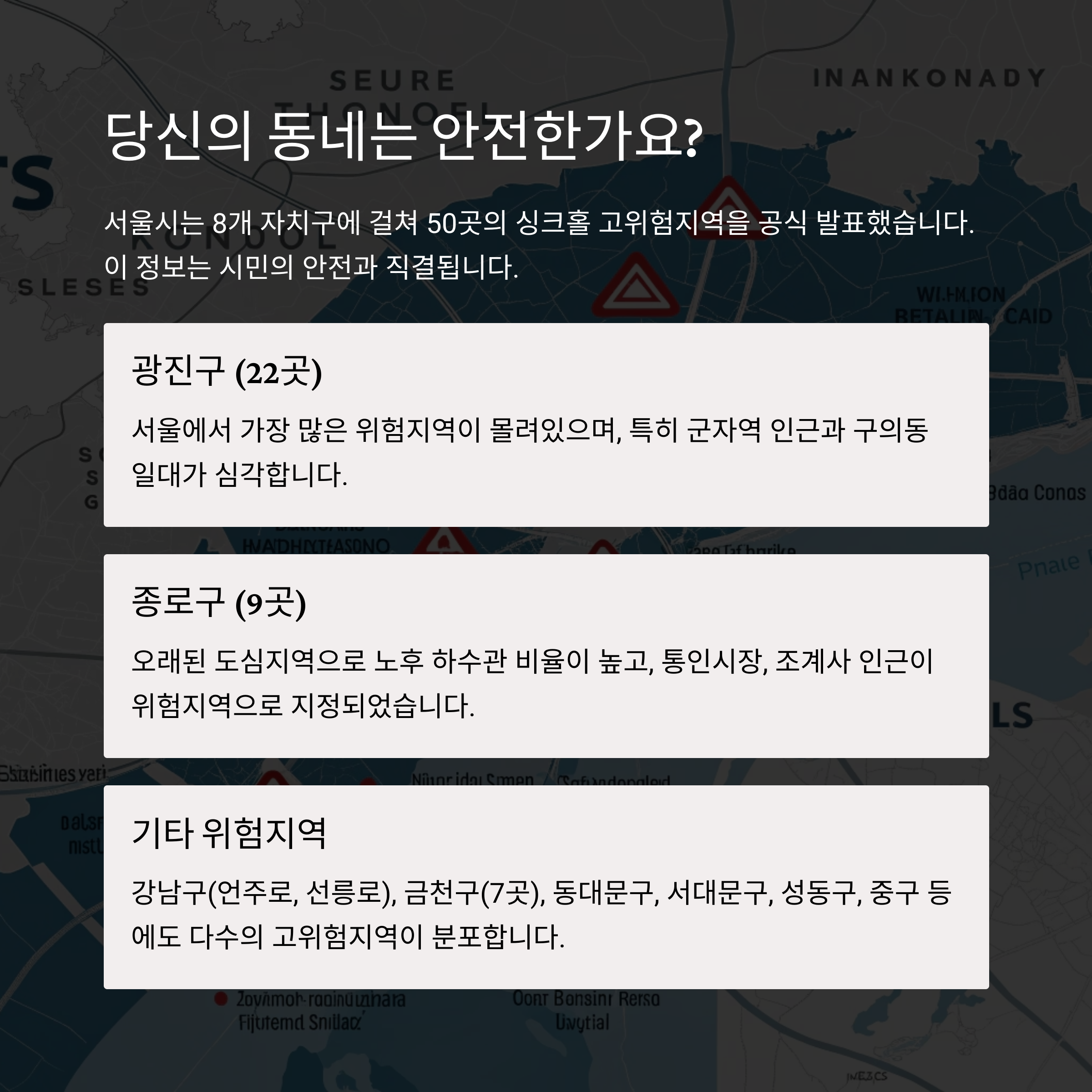 종로구, 광진구 등 싱크홀 위험 높은 지역 집중 정리