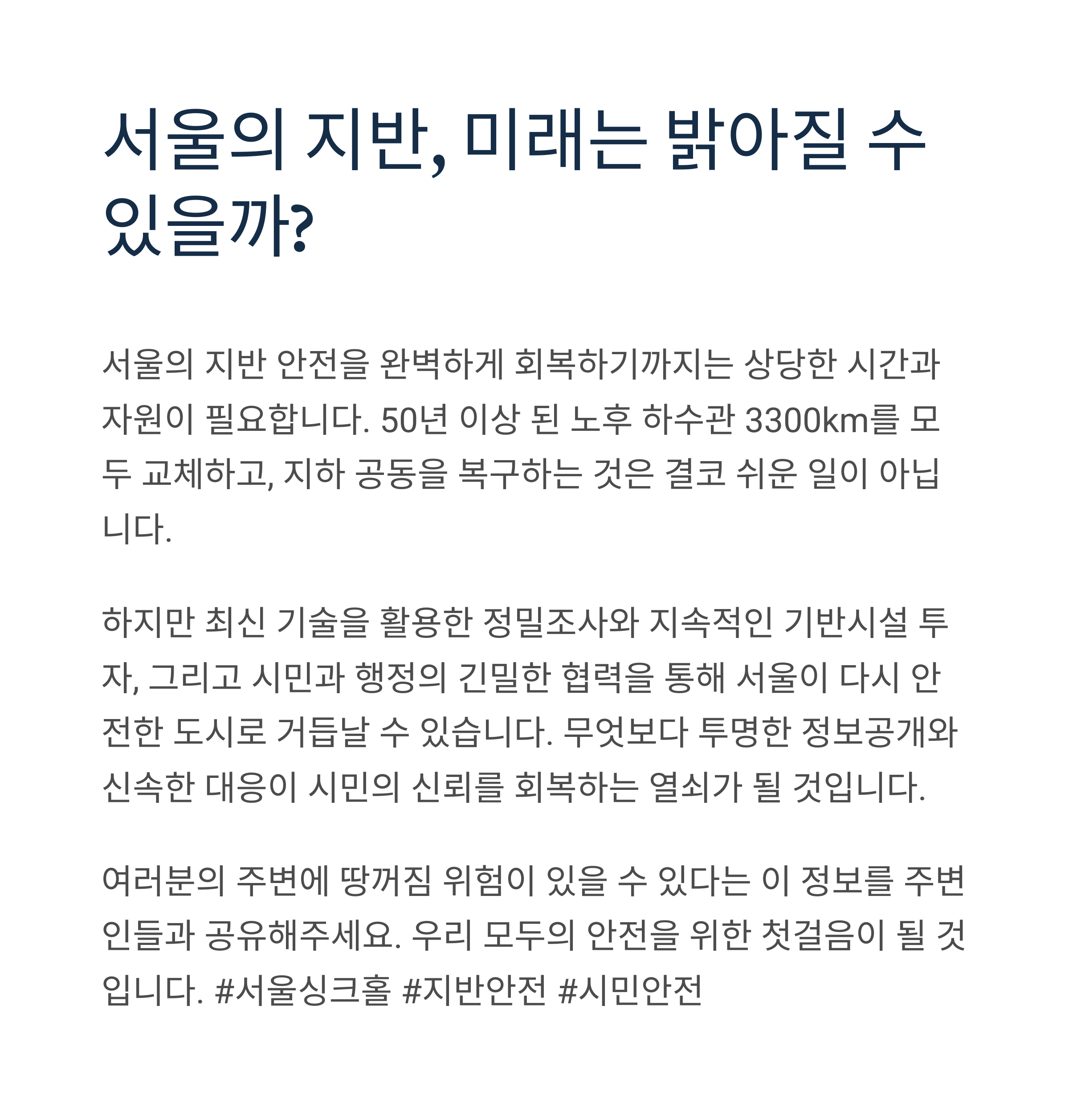 서울의 지반 안전, 해결 가능성은?