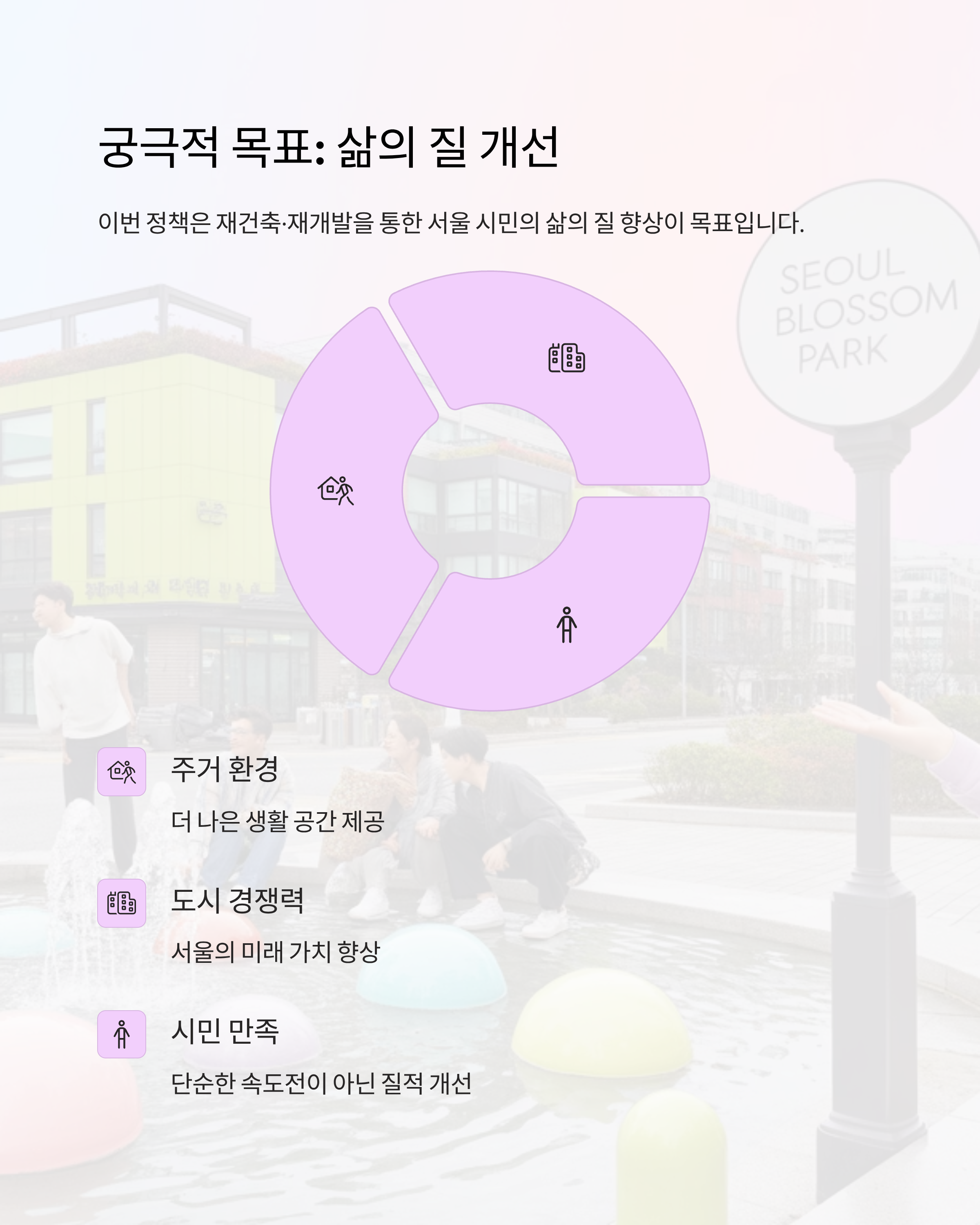 궁극적으로 이번 정책은 재건축·재개발을 통한 서울 시민의 삶의 질 향상에 있습니다. 단순한 속도전이 아니라, 더 나은 주거 환경과 도시 경쟁력을 확보하는 것이 최종적인 목표라고 할 수 있습니다.
