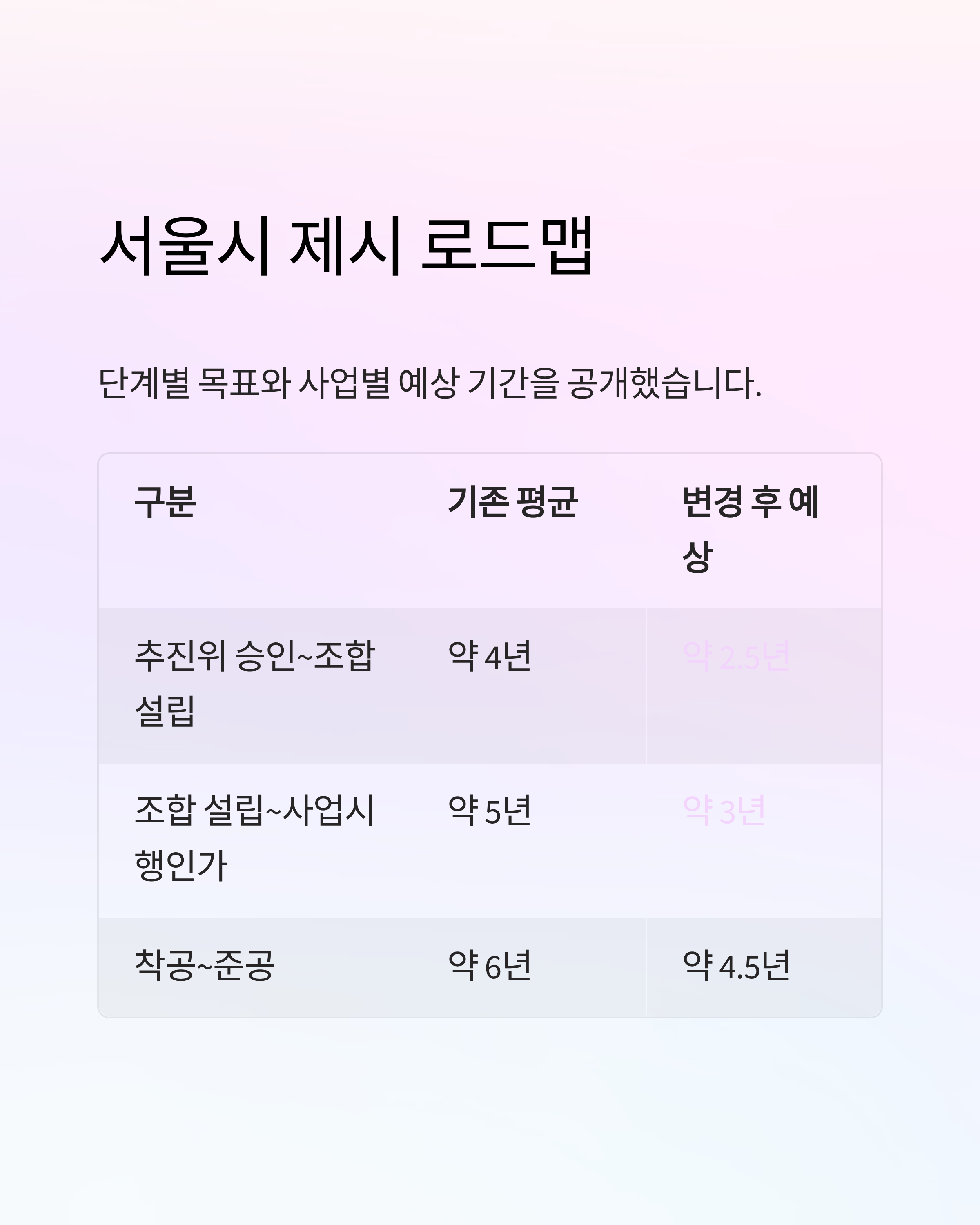 | 추진위 승인~조합 설립 | 약 4년 | 약 2.5년 |