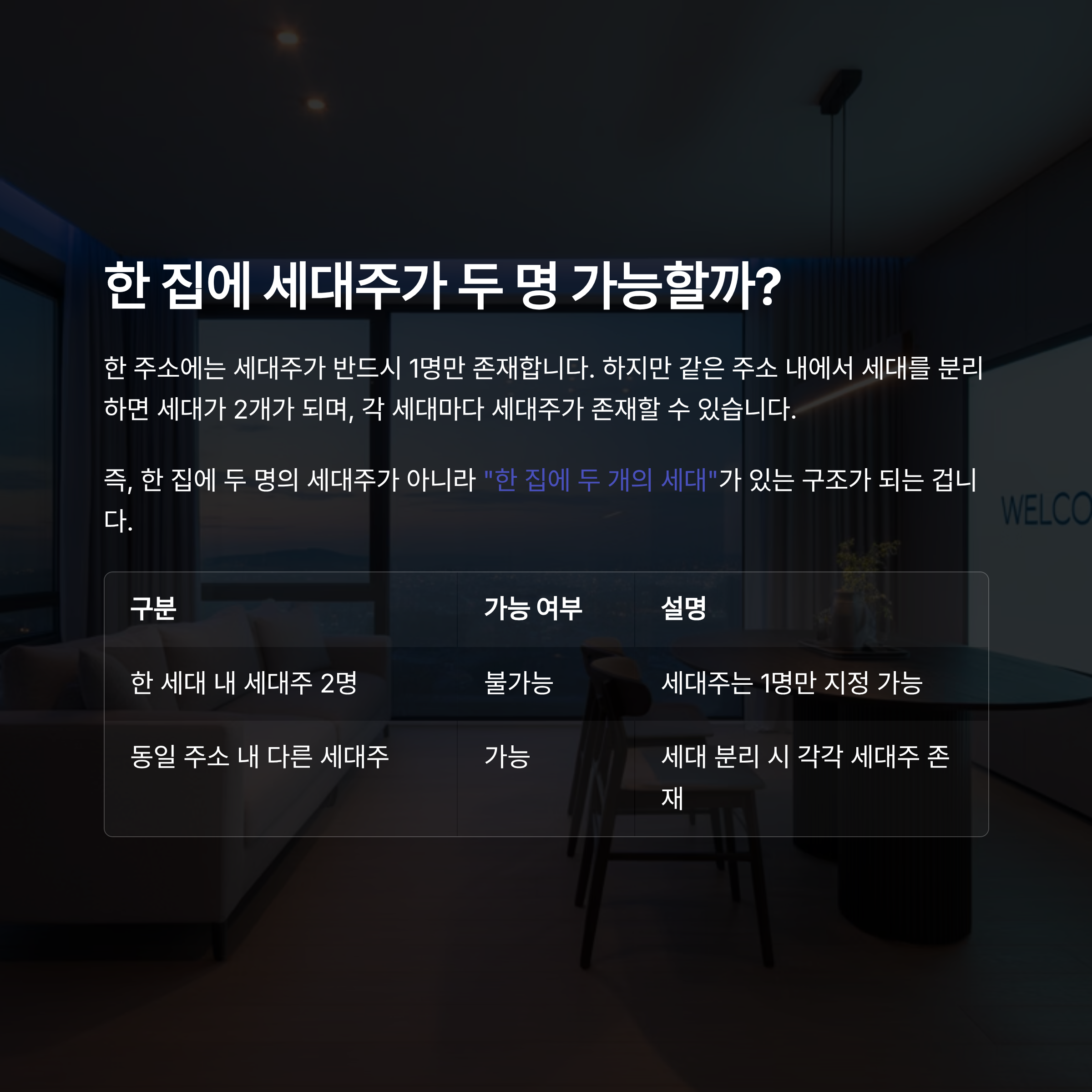 한 집에서 세대주가 두 명이 가능한지 궁금하다면
