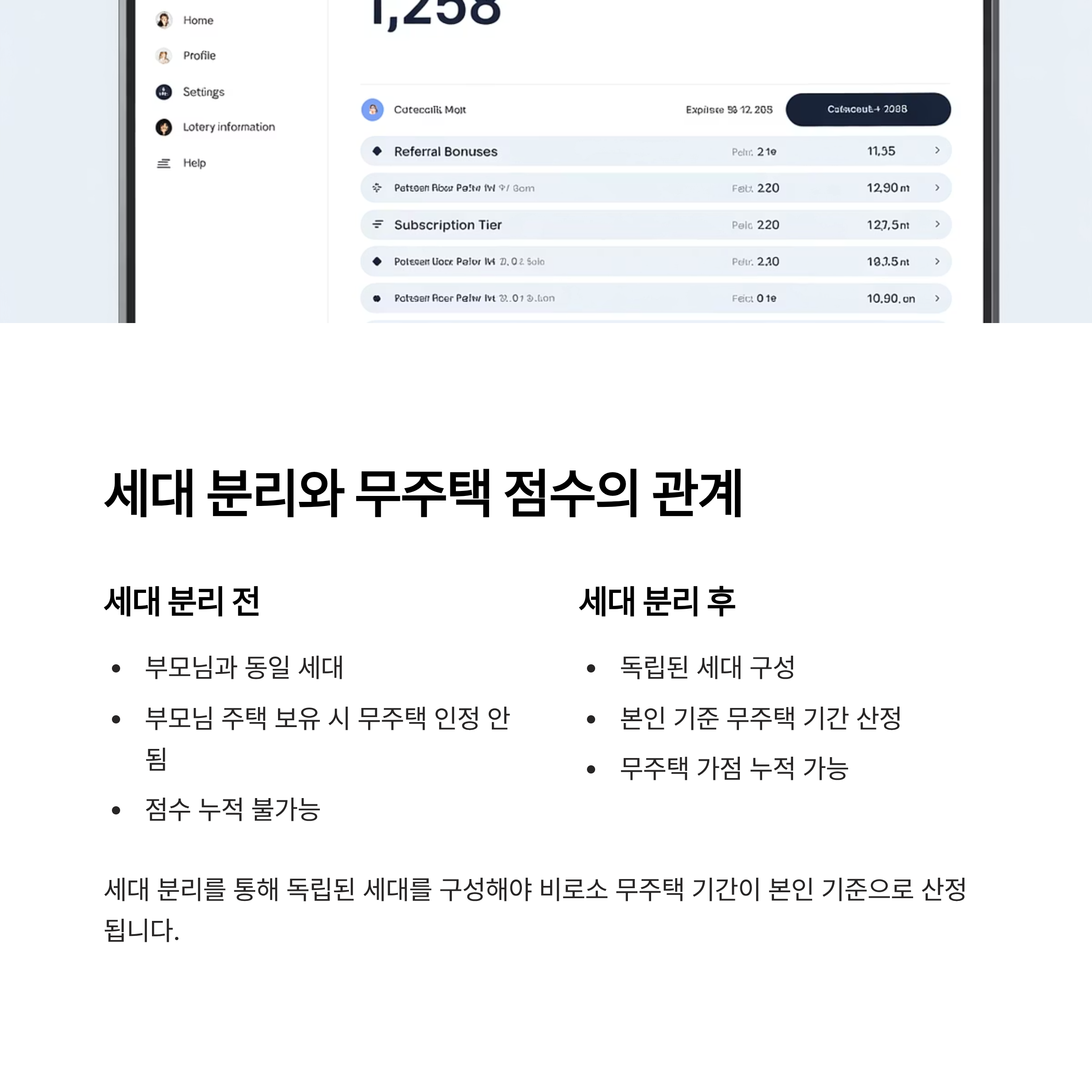 세대 분리와 무주택 점수의 관계