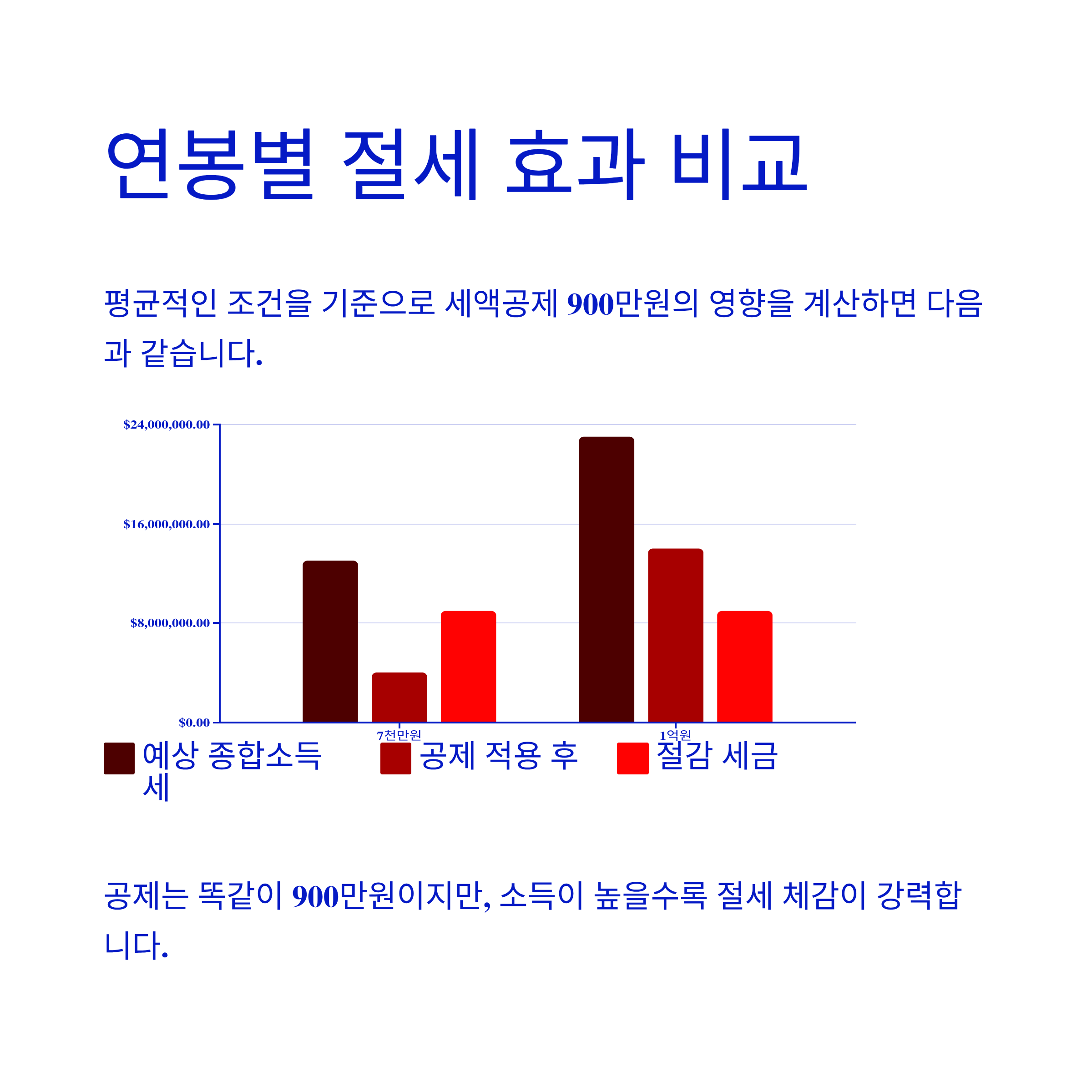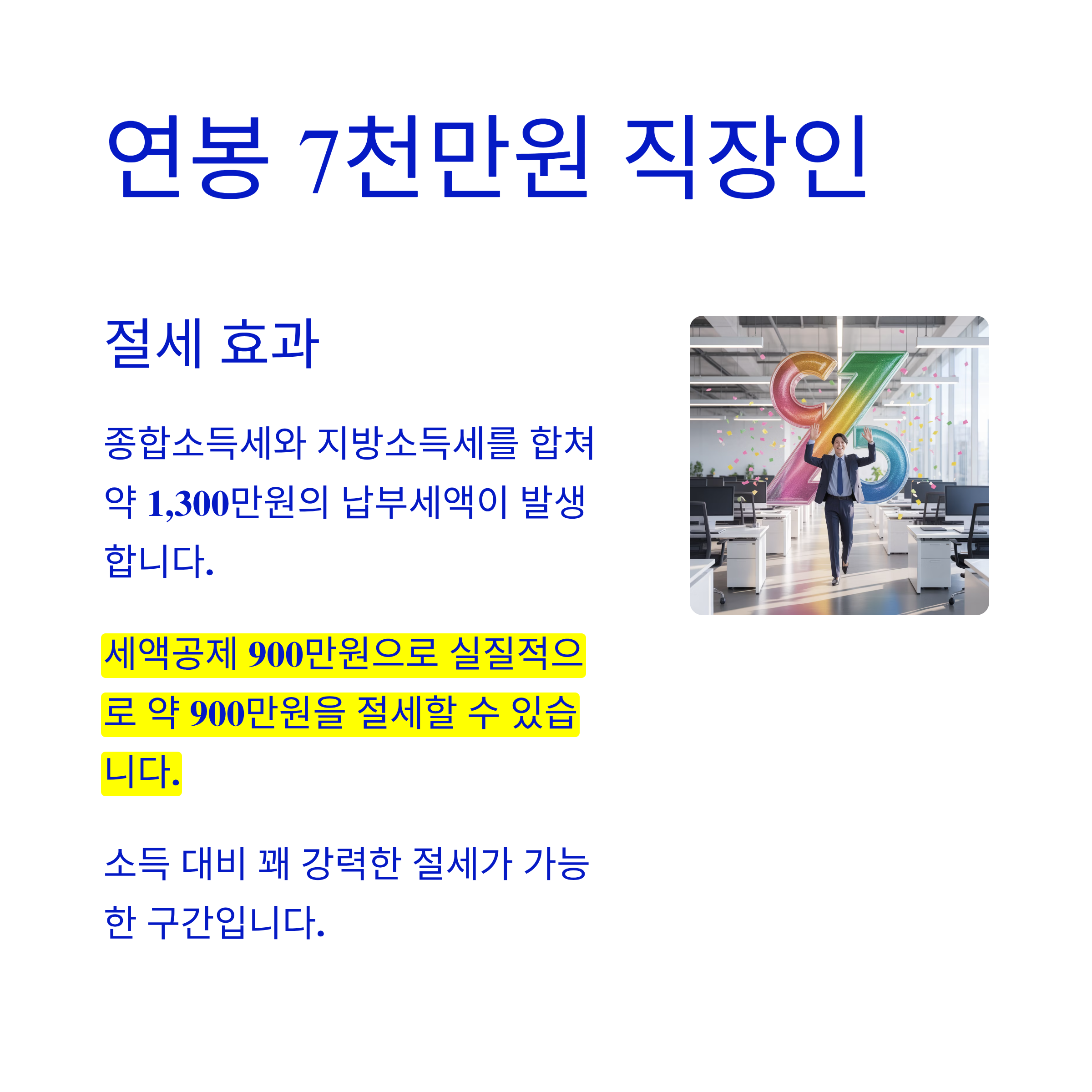연봉 7천만원과 1억원 직장인에게 세액공제 900만원은 얼마나 도움이 될까요?