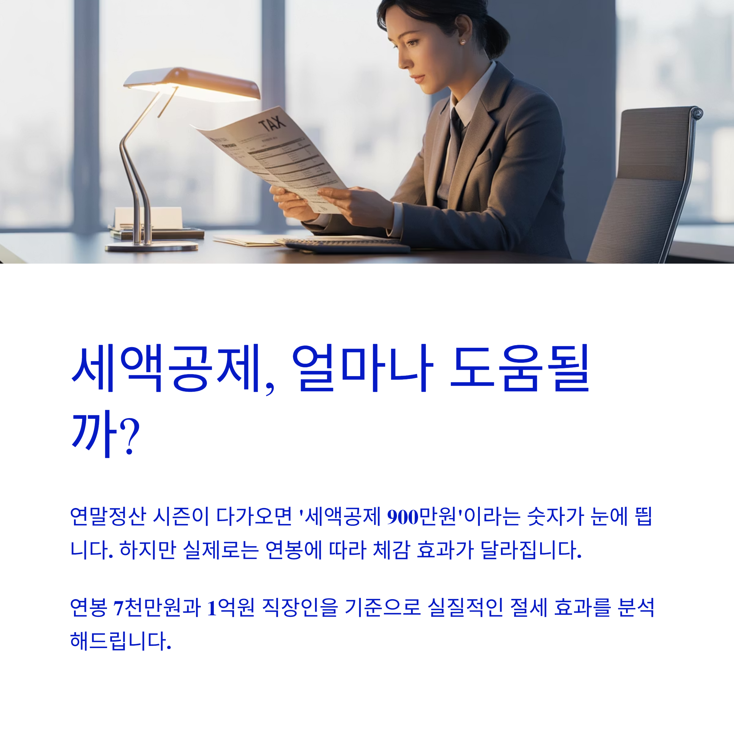 이번 글에서는 연봉 7천만원, 1억원을 받는 직장인을 기준으로 세액공제 900만원이 주는 실질적인 절세 효과를 구체적으로 정리해드립니다.