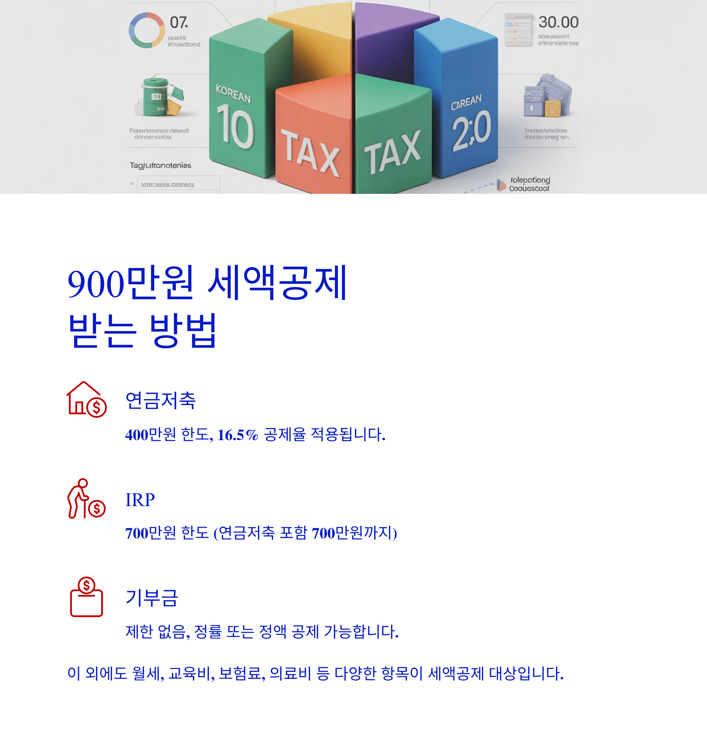 즉, 공제 자체는 똑같이 900만원이지만, 절세 체감은 소득이 높을수록 절실하고 강력합니다.