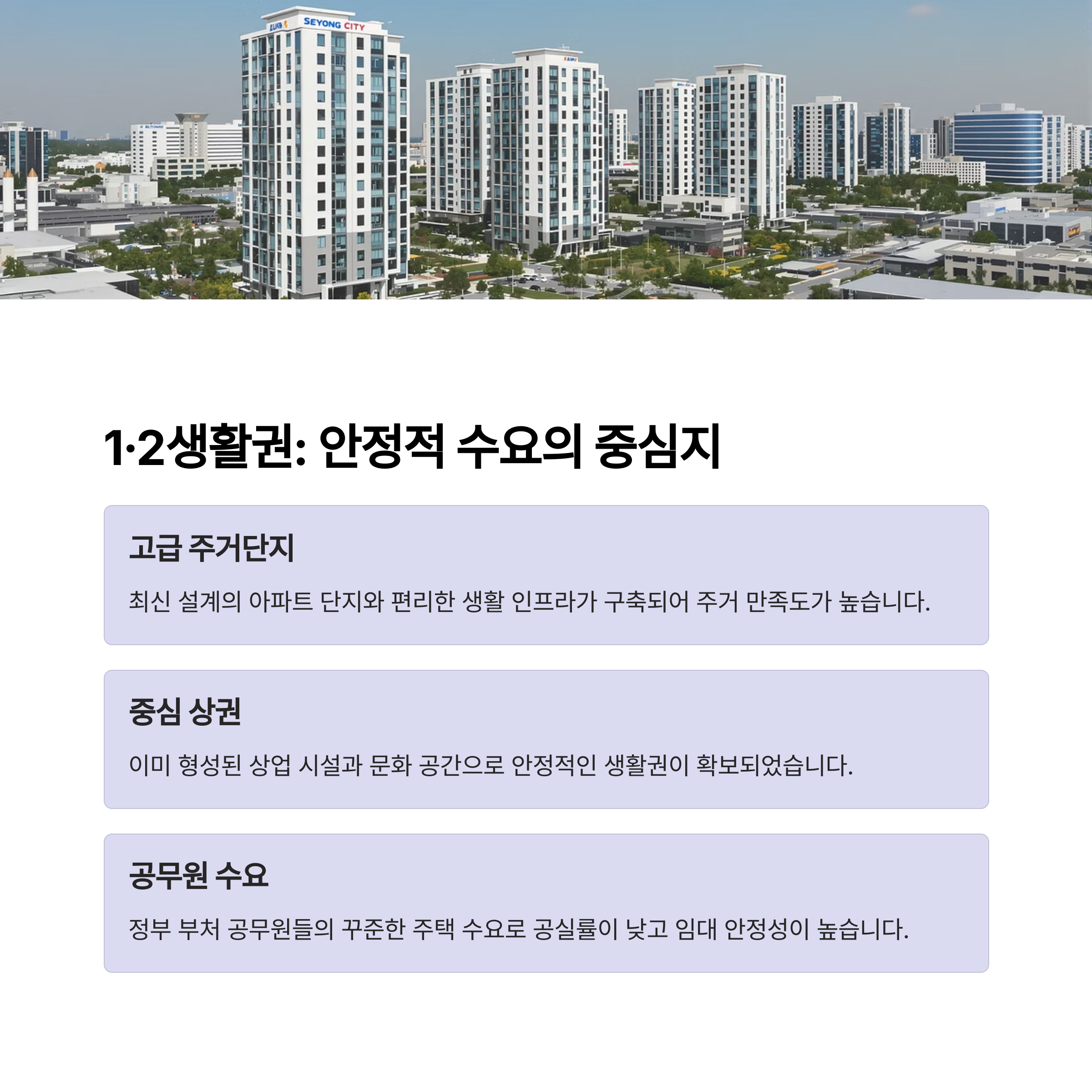 | 1생활권 | 정부청사 인접, 교통 편리 | 완성 단계 | 안정적인 수요, 실거주 인기 |