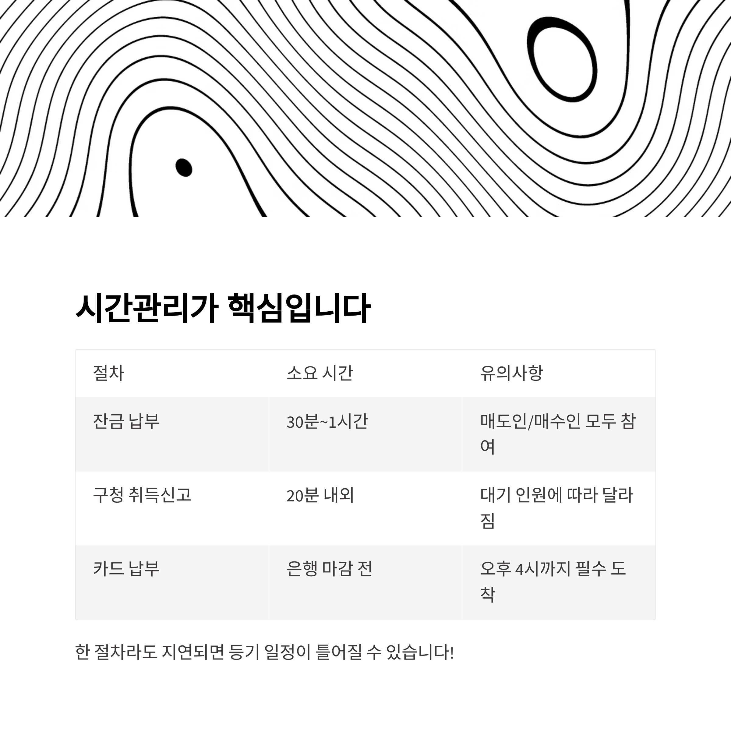 한 절차라도 지연되면 등기는 지연되고, 계획도 틀어질 수 있습니다.