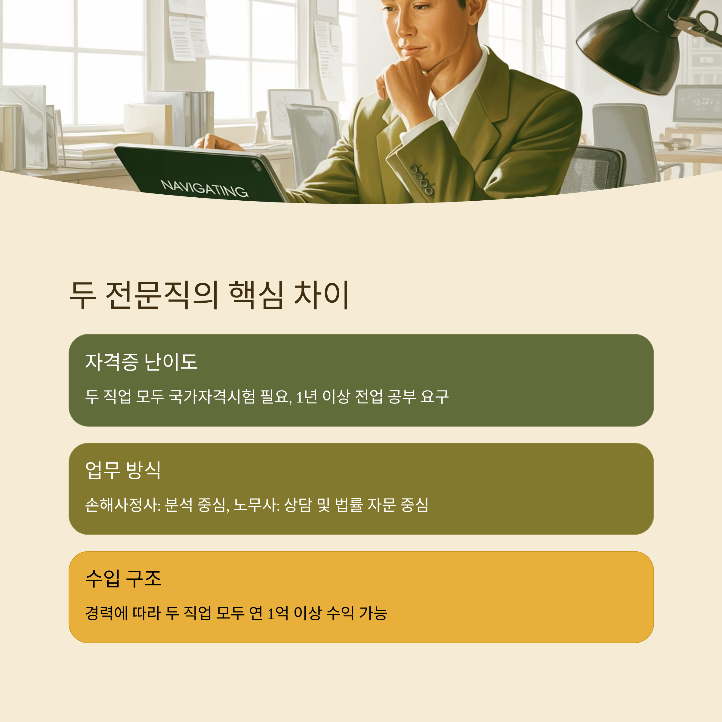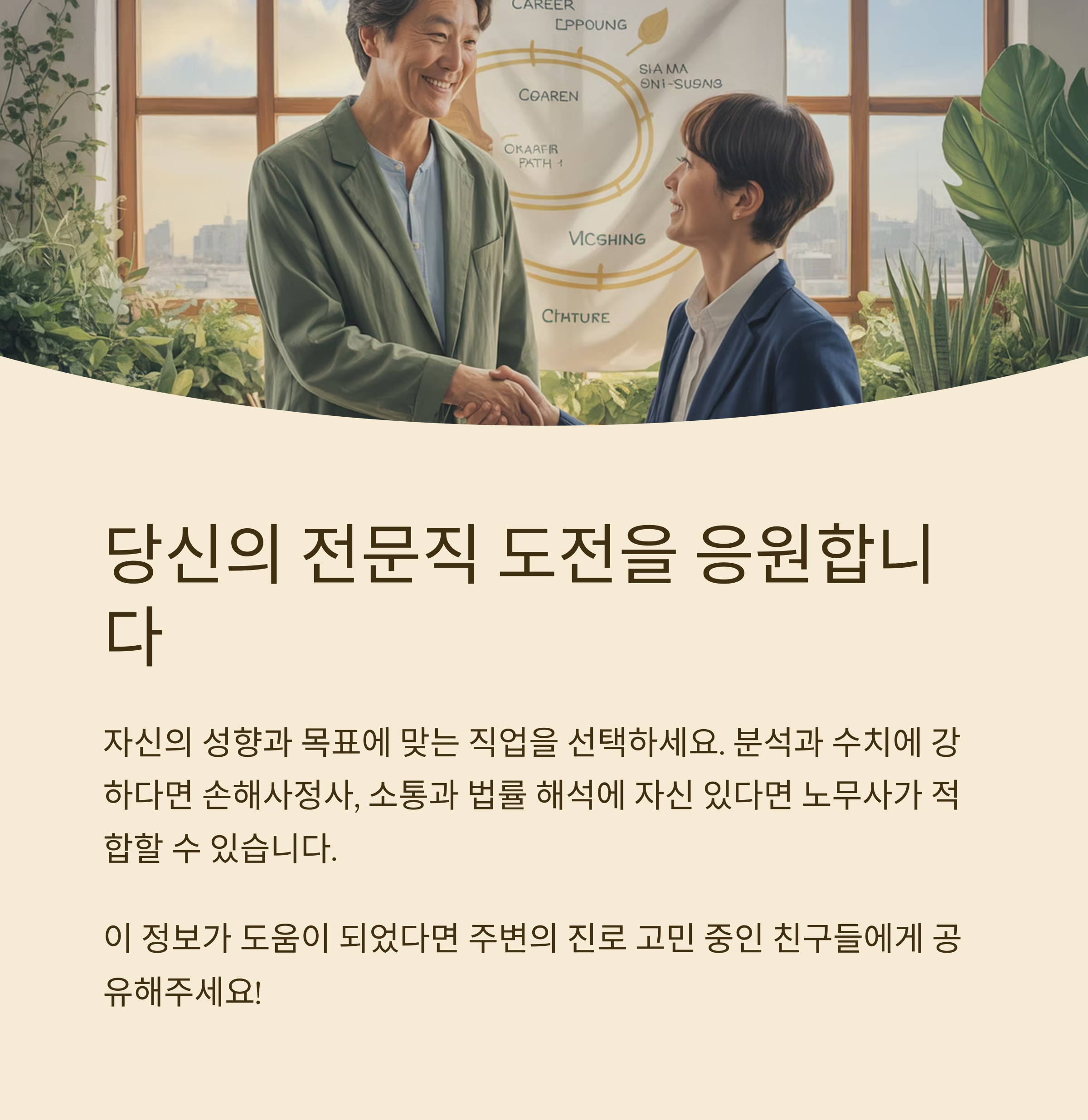 결론: "분석형 인간"이라면 손해사정사, "상담형 인간"이라면 노무사에 도전해보세요.