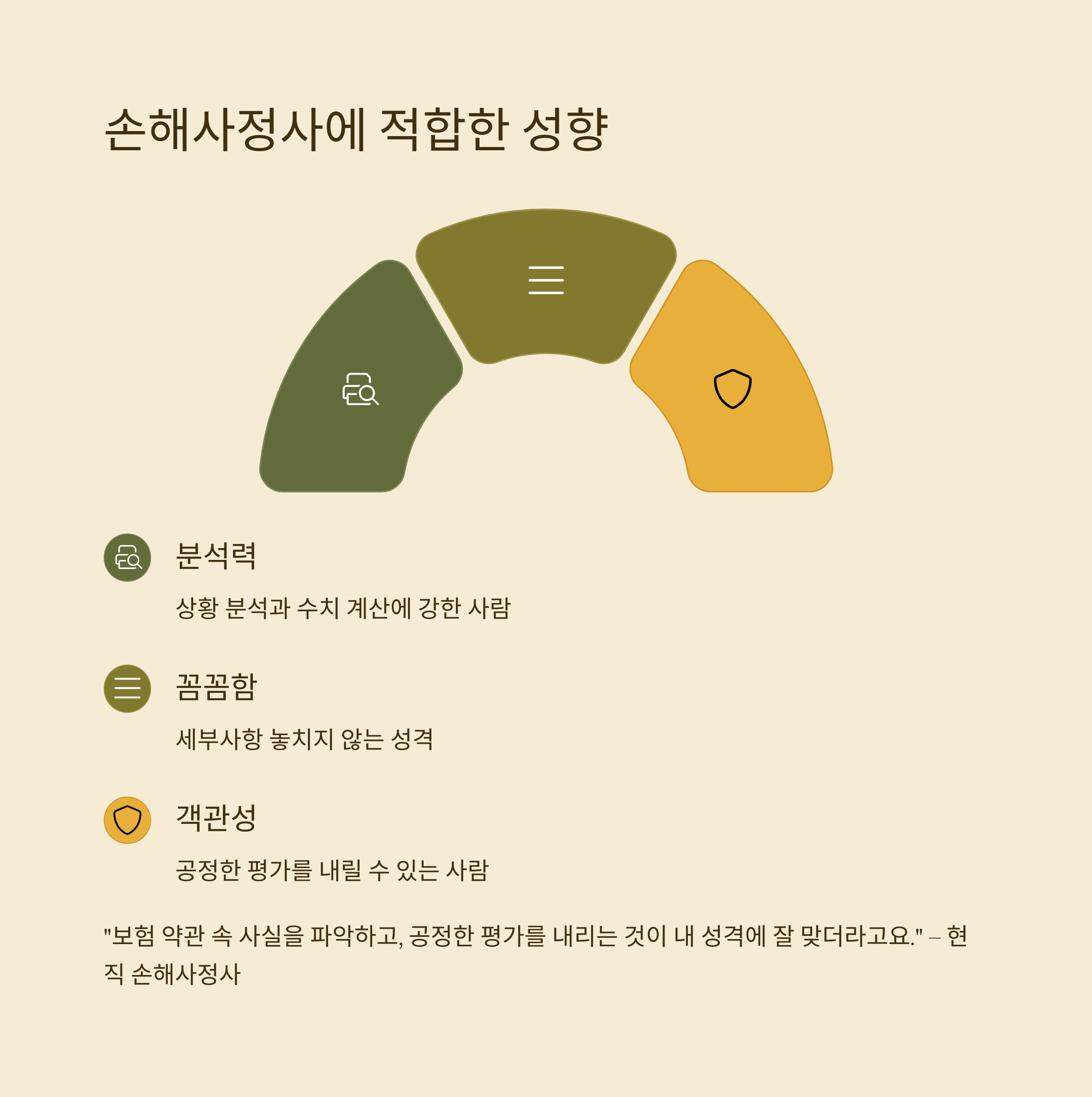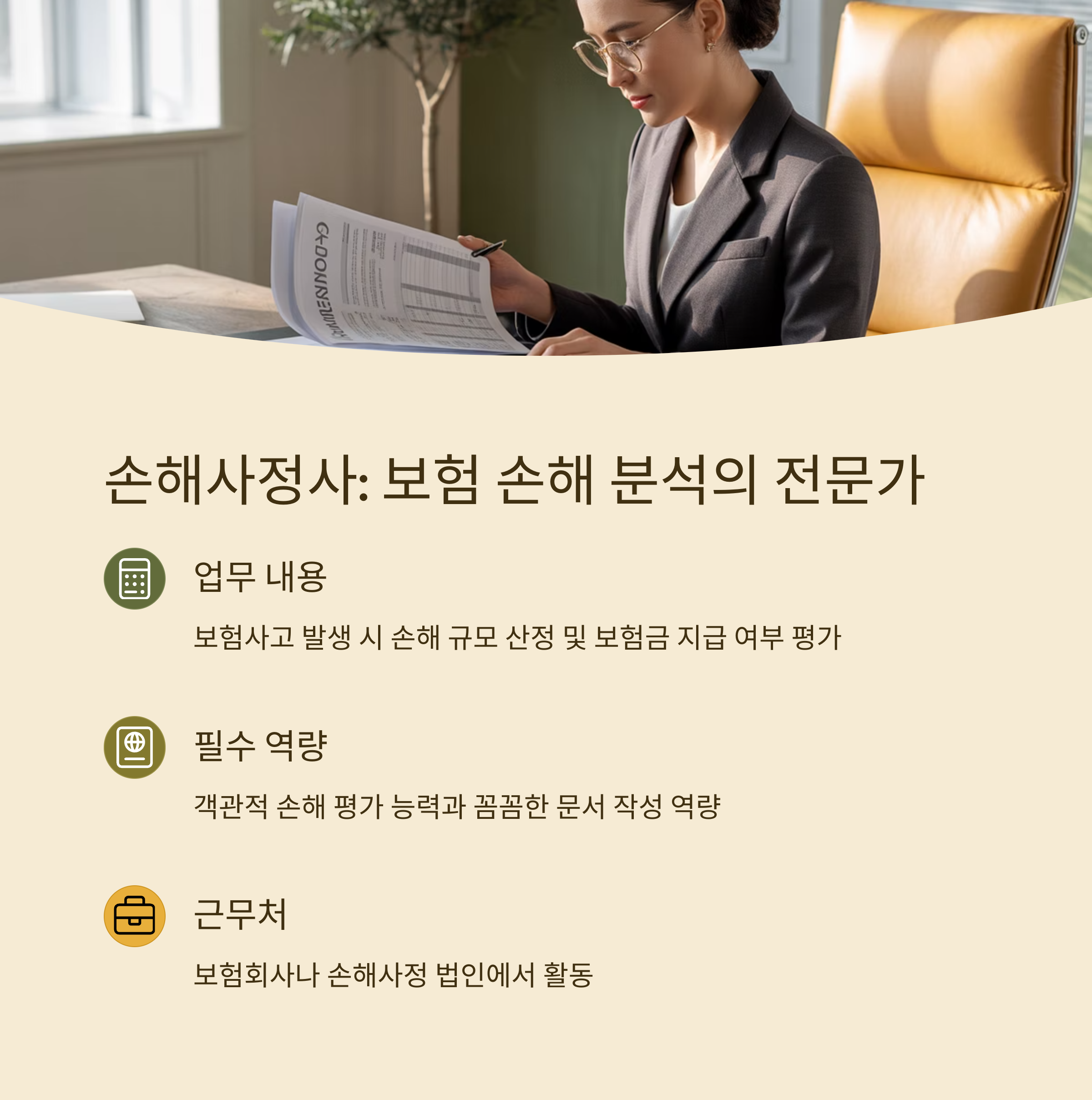 중요: 손해사정사는 객관적인 손해 평가 능력과 꼼꼼한 문서 작성 역량이 필수입니다.