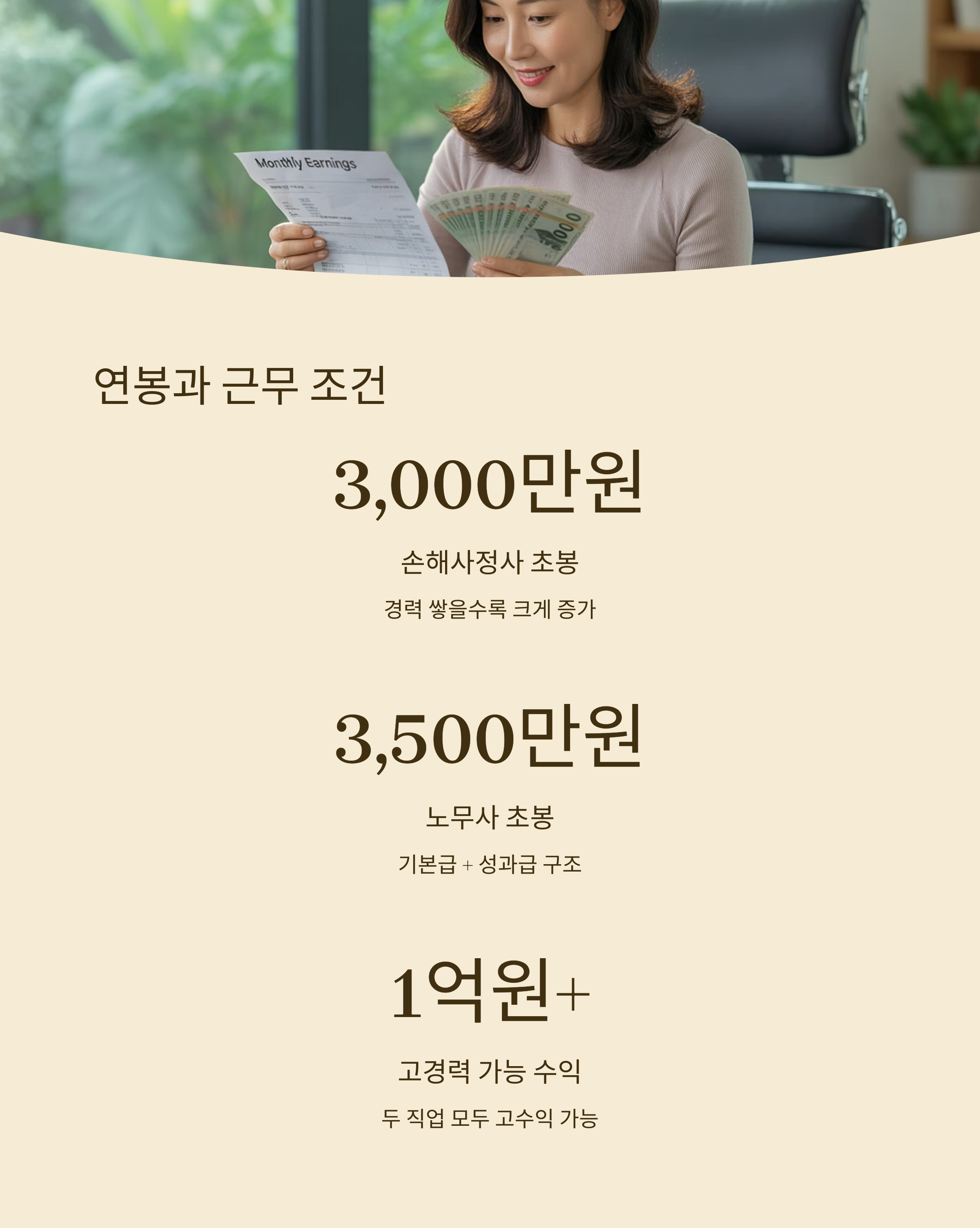 | 손해사정사 | 약 3,000만원 | 약 4,000~6,000만원 | 연 1억 이상도 가능 |