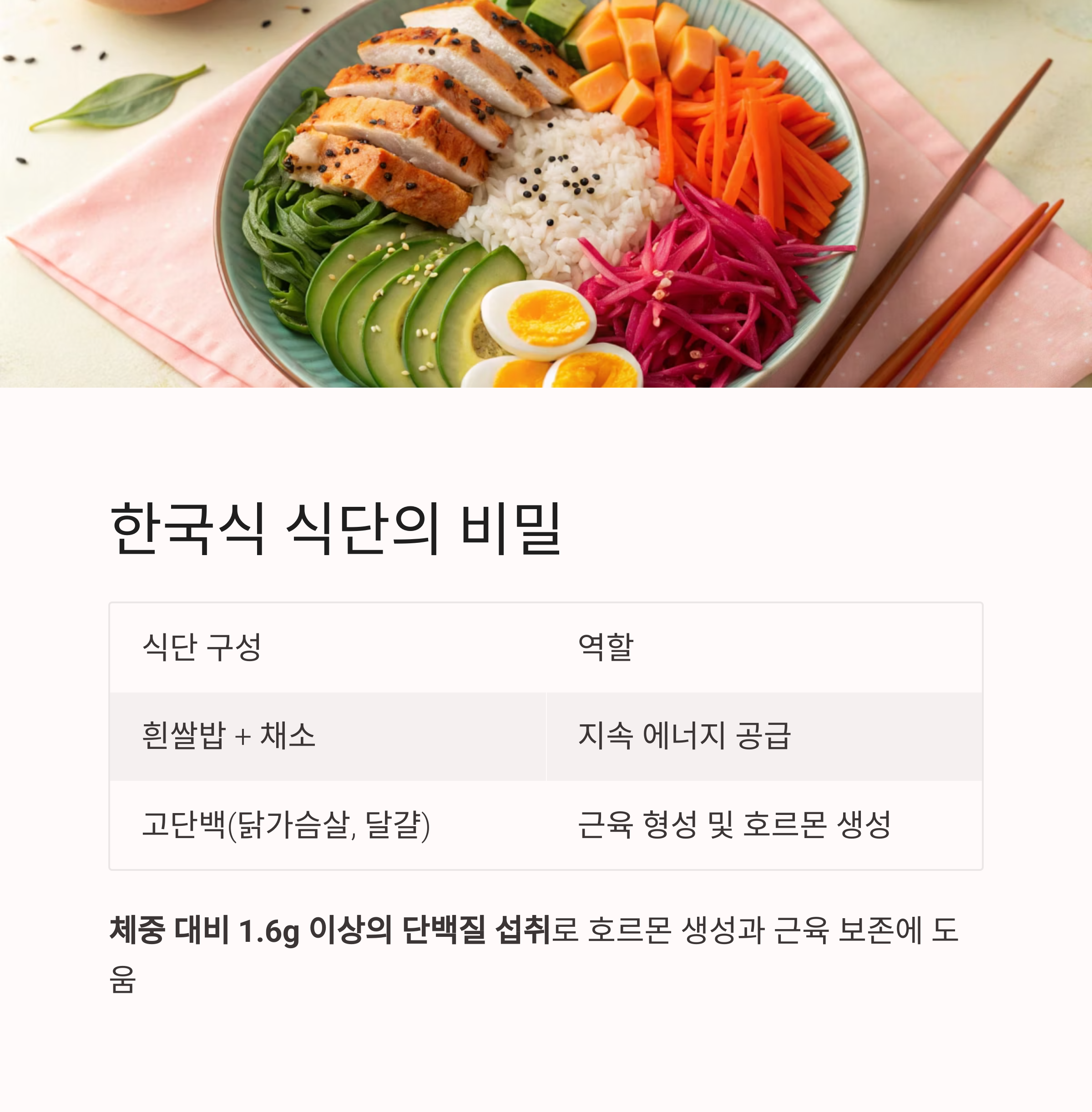 특히 단백질 섭취량을 체중 대비 1.6g 이상으로 유지한다는 점은