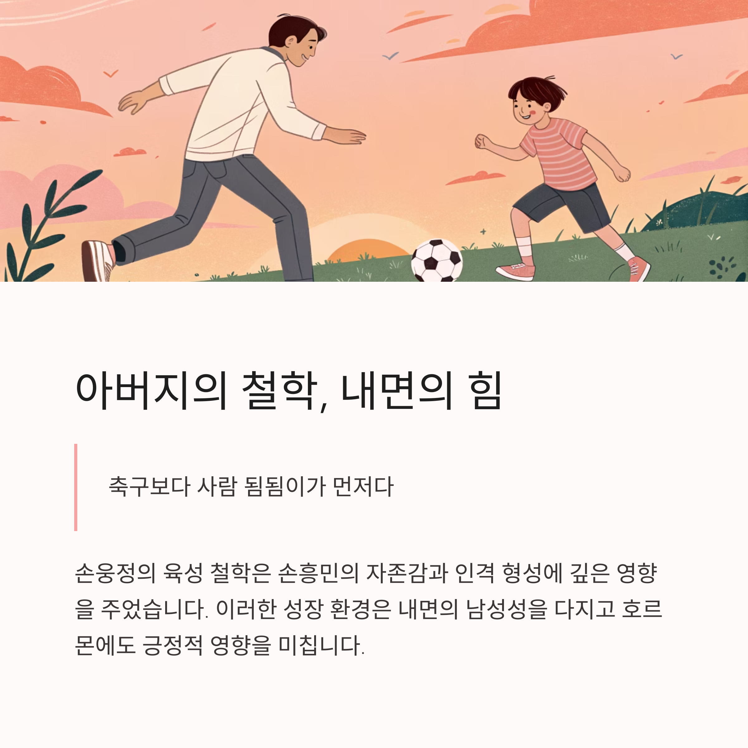 손흥민의 자존감과 인격 형성에 깊은 영향을 주었습니다.