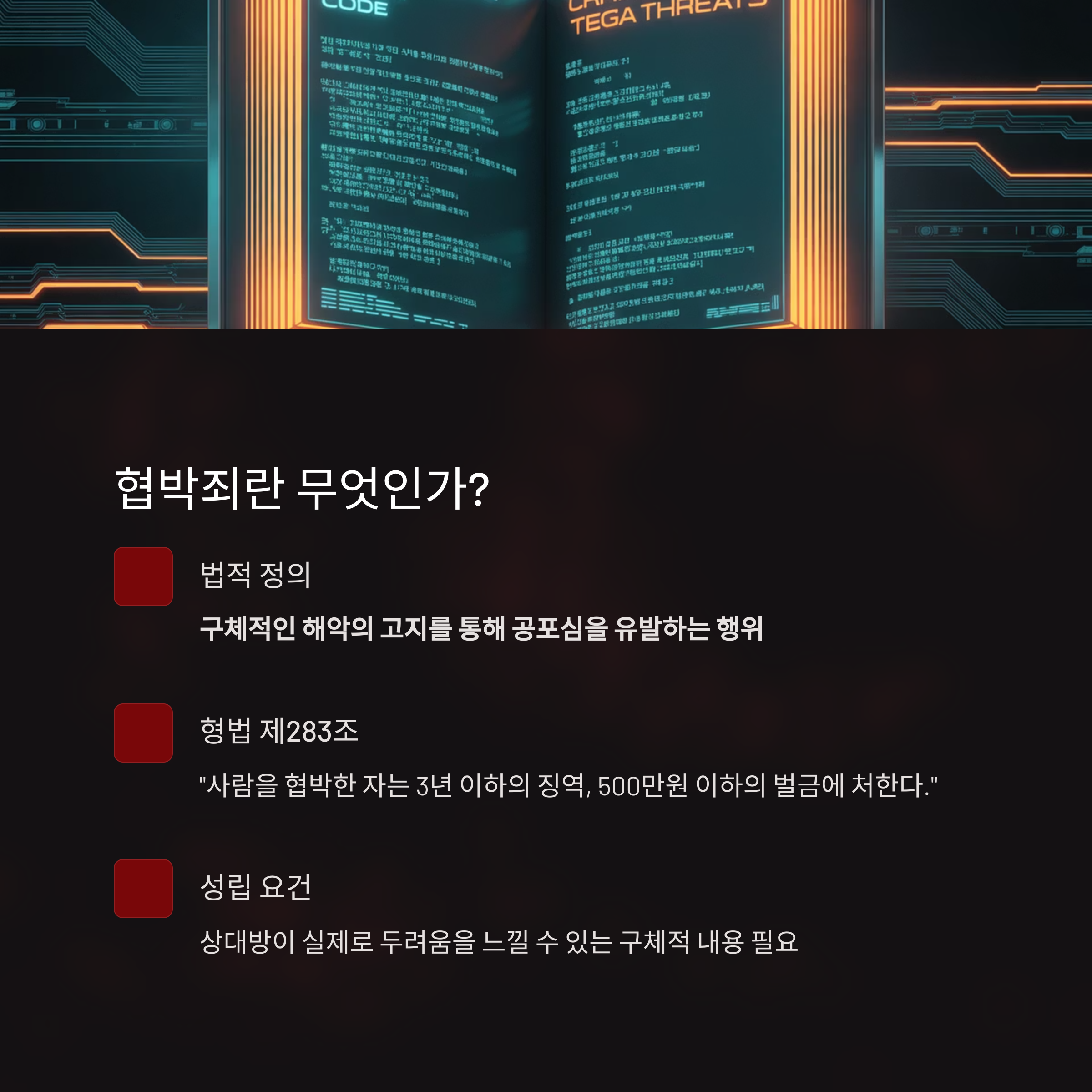 상대방이 실제로 두려움을 느낄 수 있을 만큼의 구체적 내용이 포함되어야 합니다.