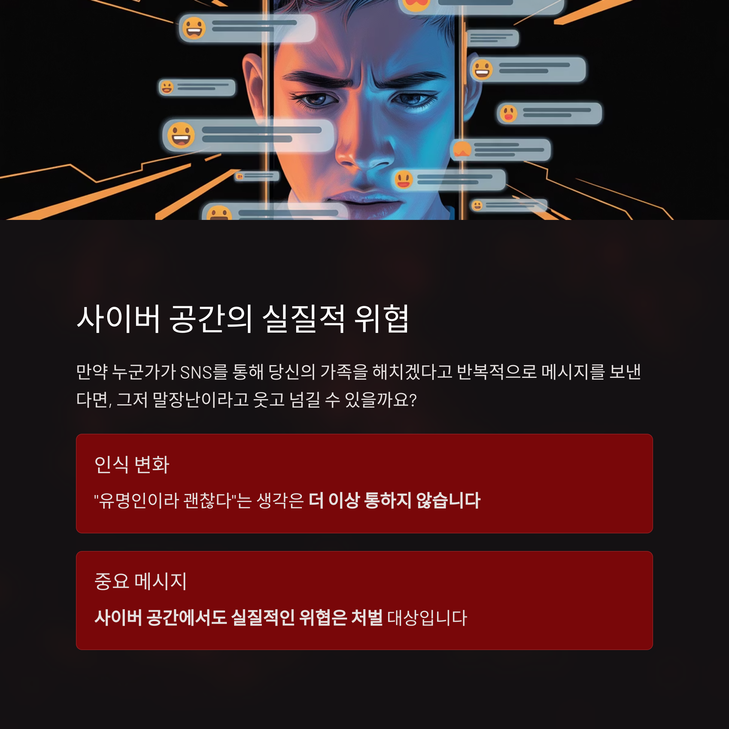 사이버 공간에서도 실질적인 위협이 처벌될 수 있다는 중요한 메시지를 던지고 있습니다.