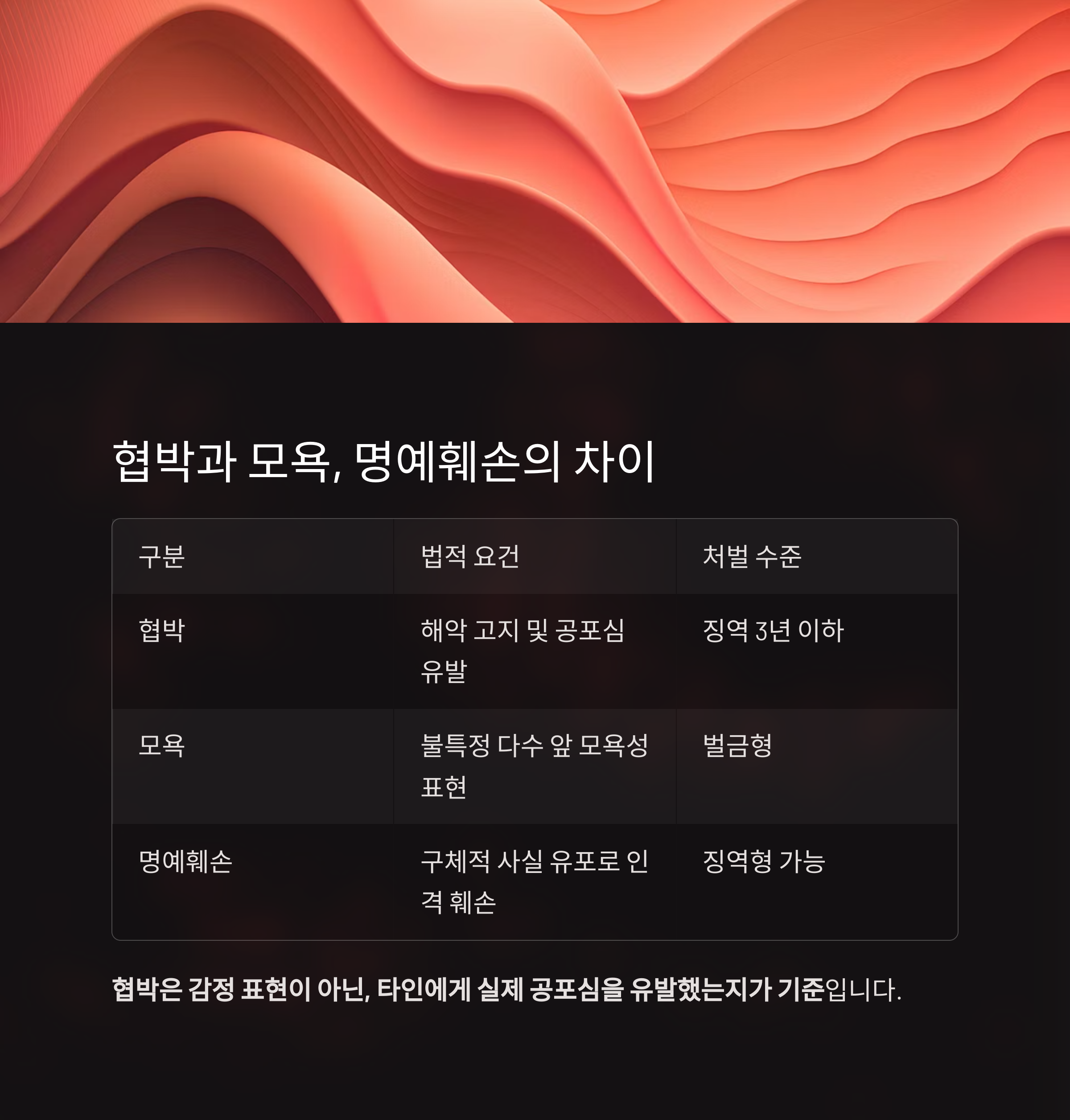 협박과 명예훼손, 모욕죄의 구분 기준은?