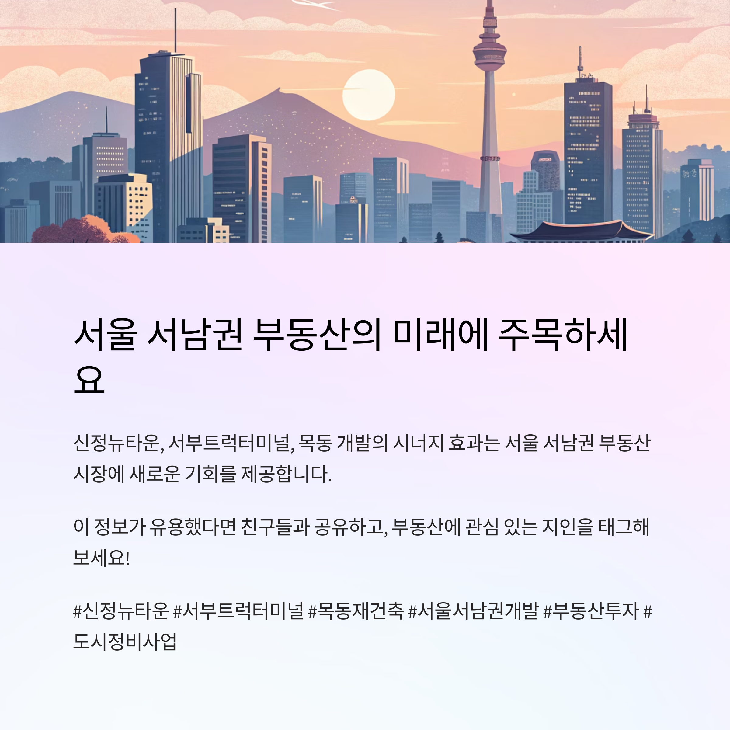이 글에서는 왜 신정뉴타운과 서부트럭터미널이 목동과 함께 부동산 시장의 견인차 역할을 하게 되는지,
