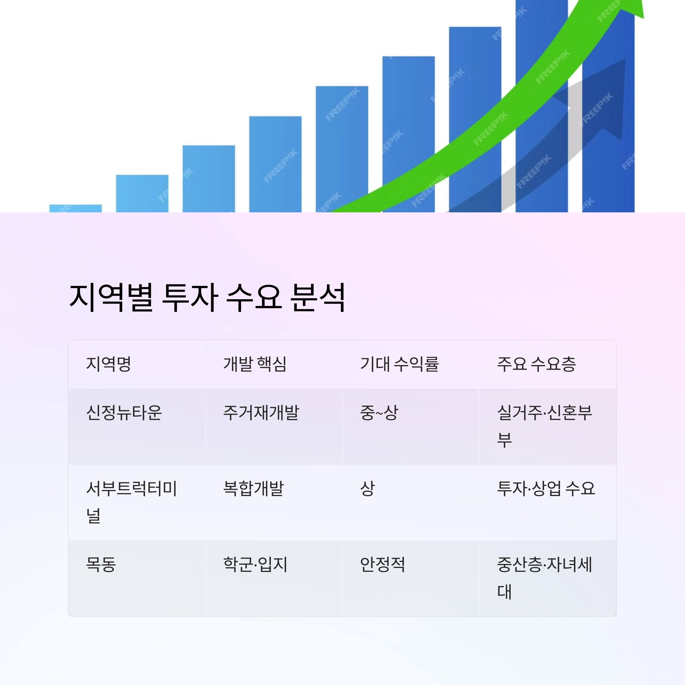 | 지역명 | 개발 핵심 | 기대 수익률 | 주요 수요층 |
