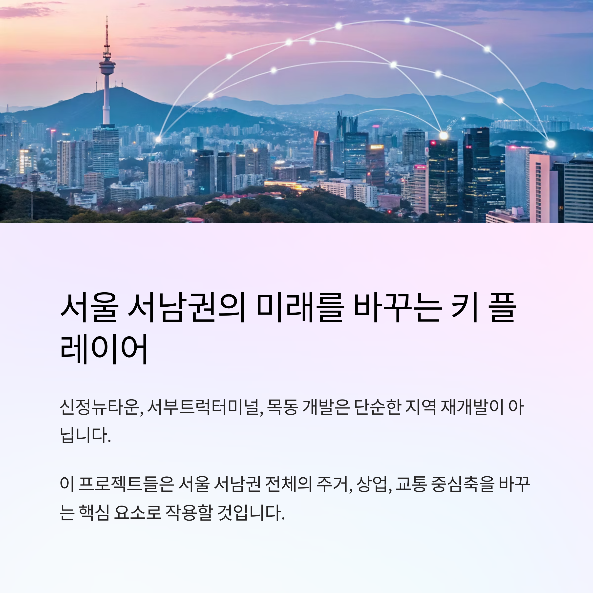 서울 서남권 전체의 주거, 상업, 교통 중심축을 바꾸는 키 플레이어입니다.
