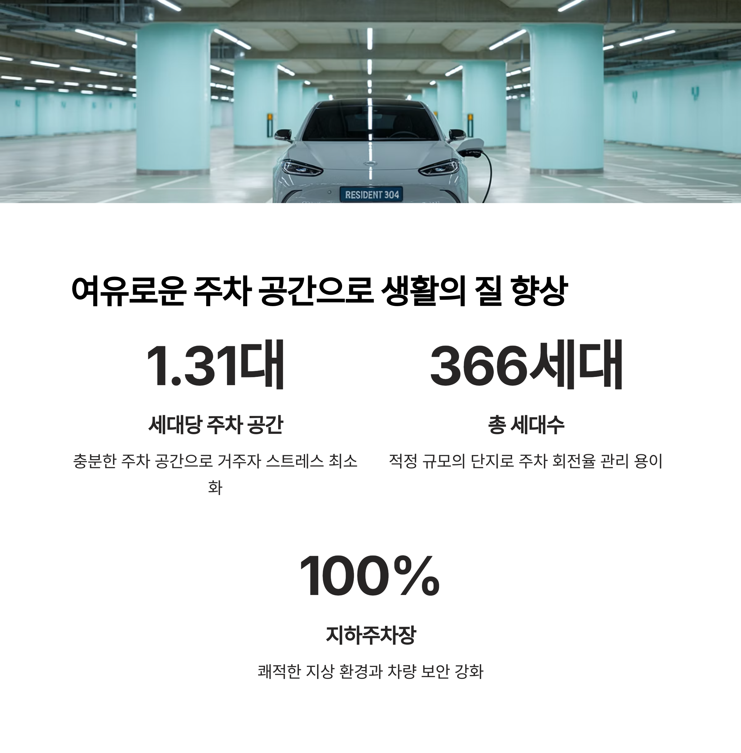 세대당 1.31대의 주차 공간이 확보되어 있어 주차 스트레스가 적습니다.