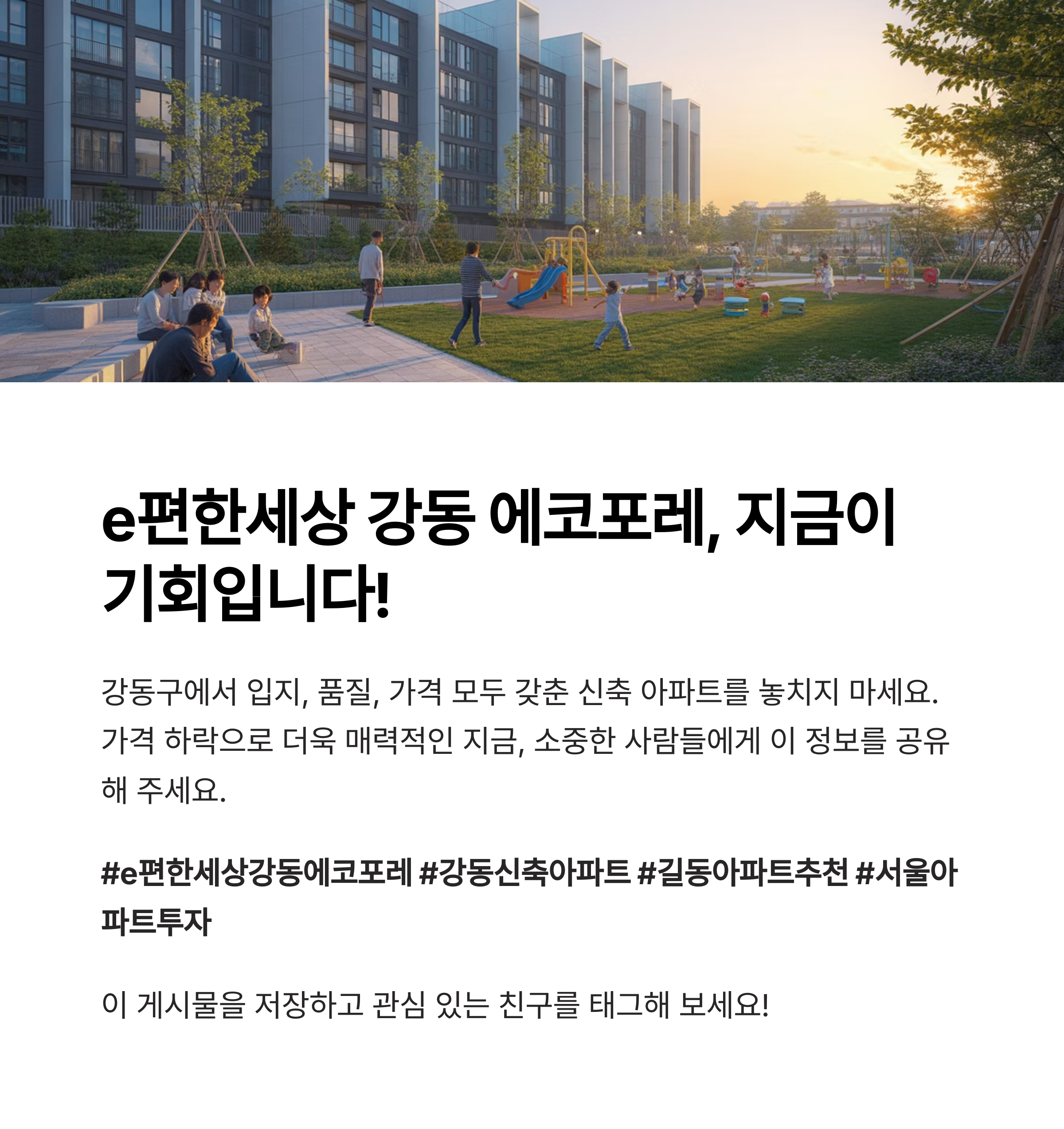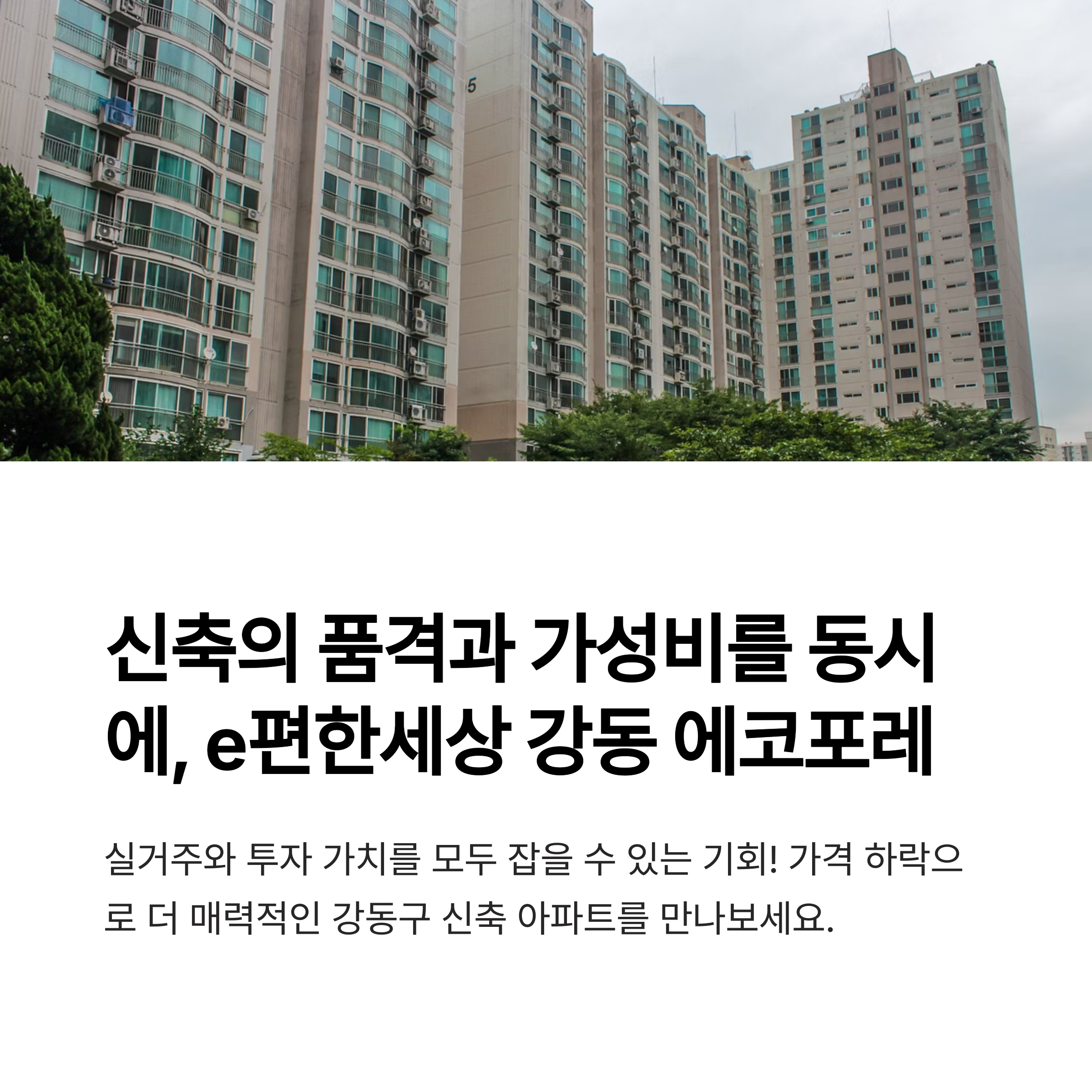 e편한세상 강동 에코포레는 강동구 내 신축 중에서도 입지, 설계, 브랜드 신뢰도,