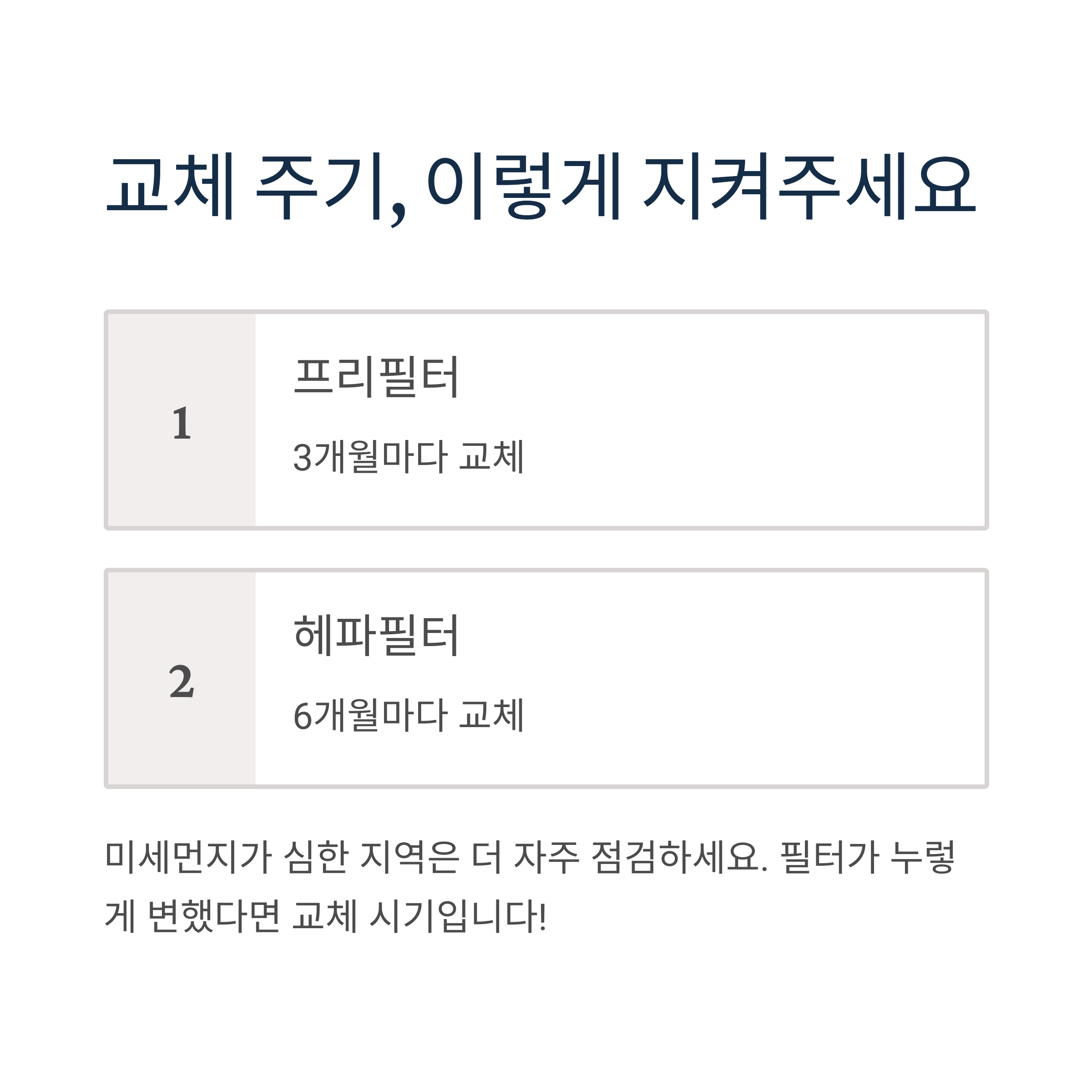 순환시킬 수 있습니다. 깨끗한 공기를 위해 정기 교체는 필수입니다.
