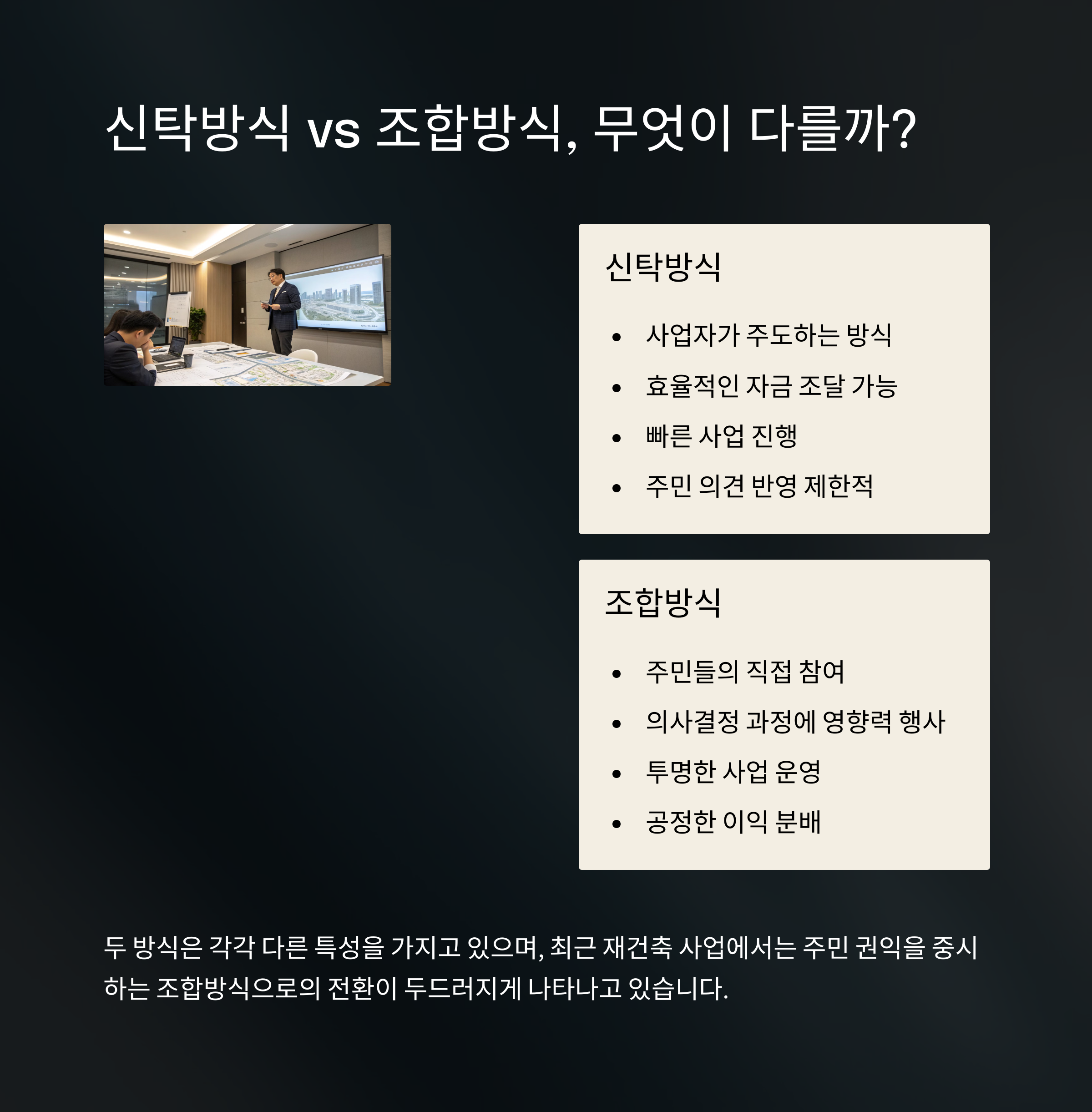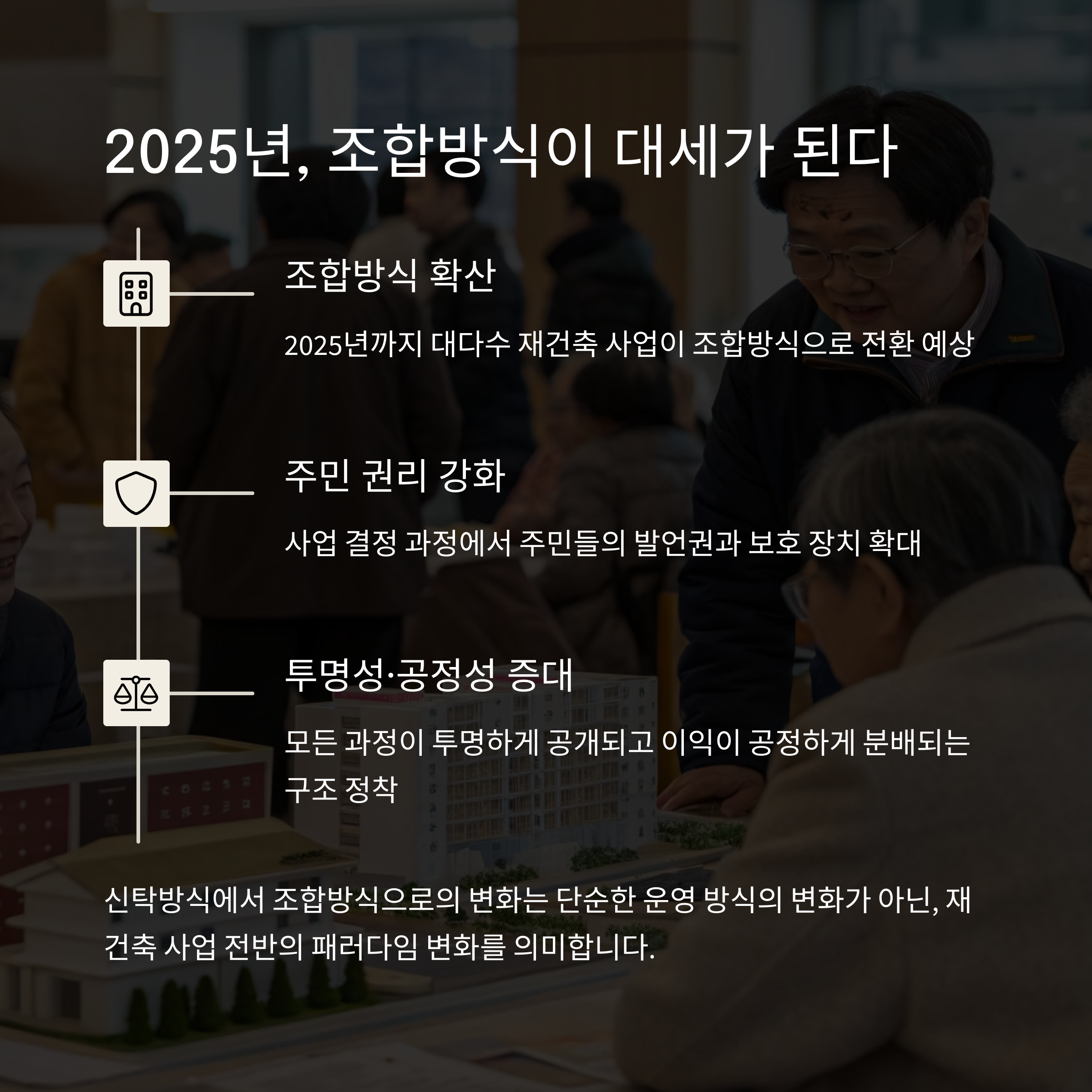 | 신탁방식 | 조합방식 | 2025년 시사점 |