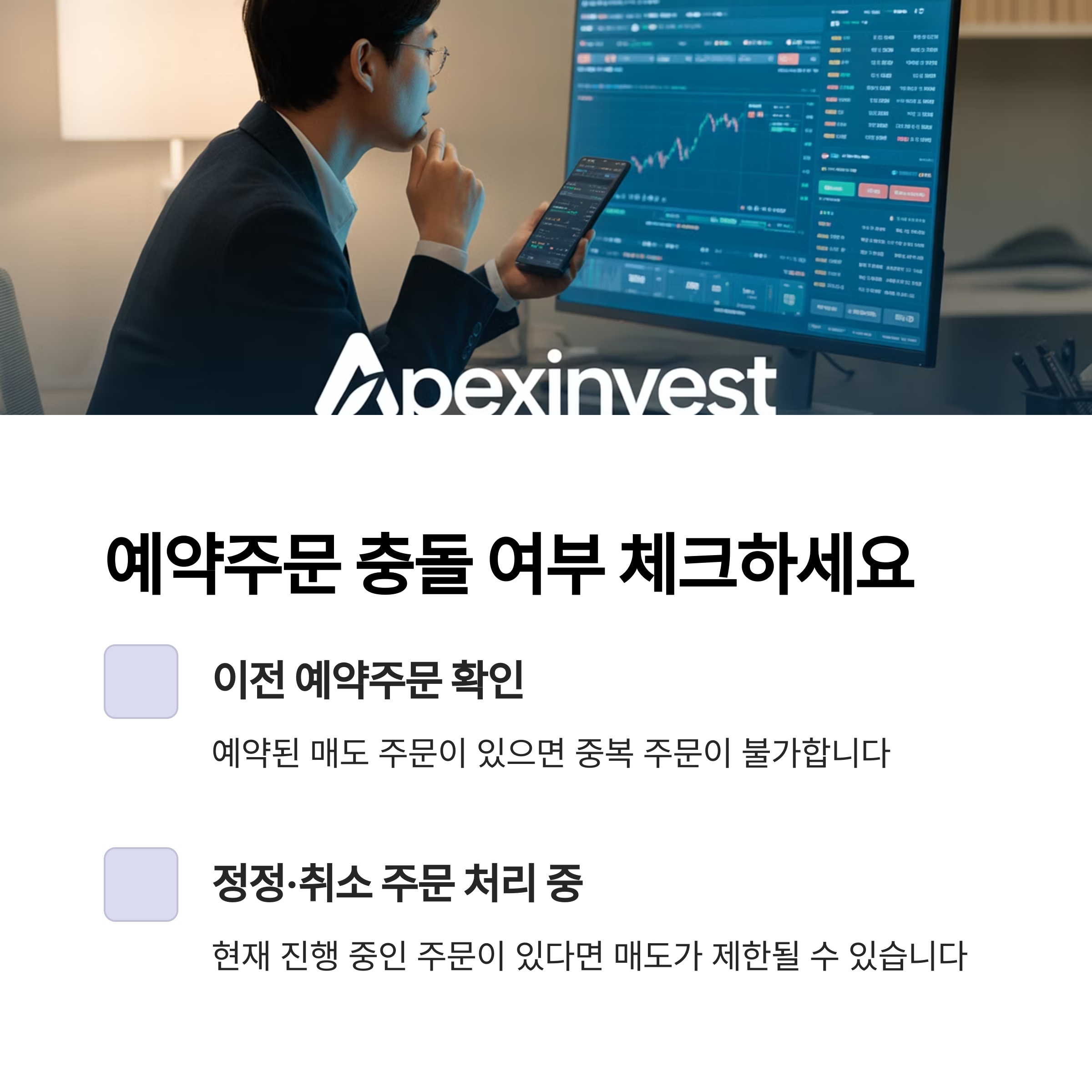정정·취소 주문이 처리 중일 경우 중복으로 매도 주문이 되지 않습니다.