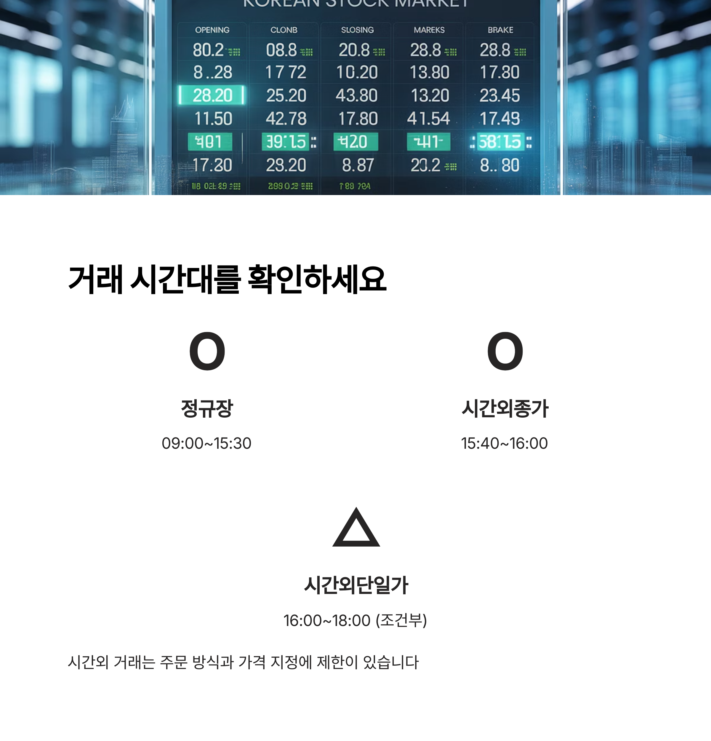 시간외 거래 시간대에는 조건이 제한됩니다