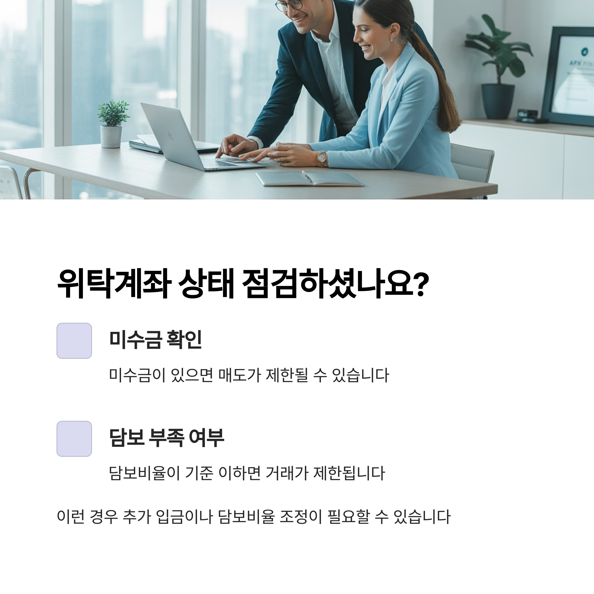 위탁계좌 상태나 미수금 여부도 점검이 필요합니다