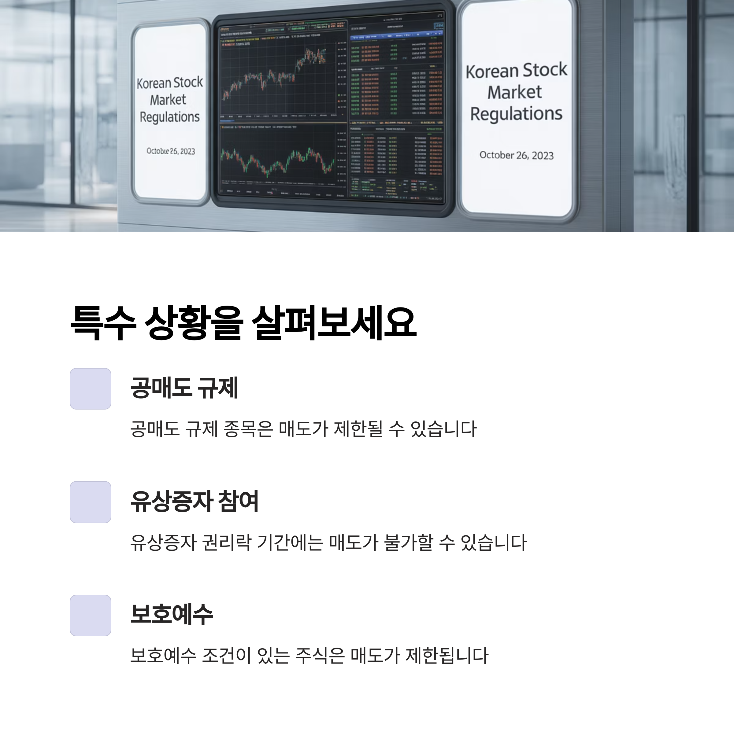 공매도 규제 종목의 경우 매도가 제한될 수 있으며