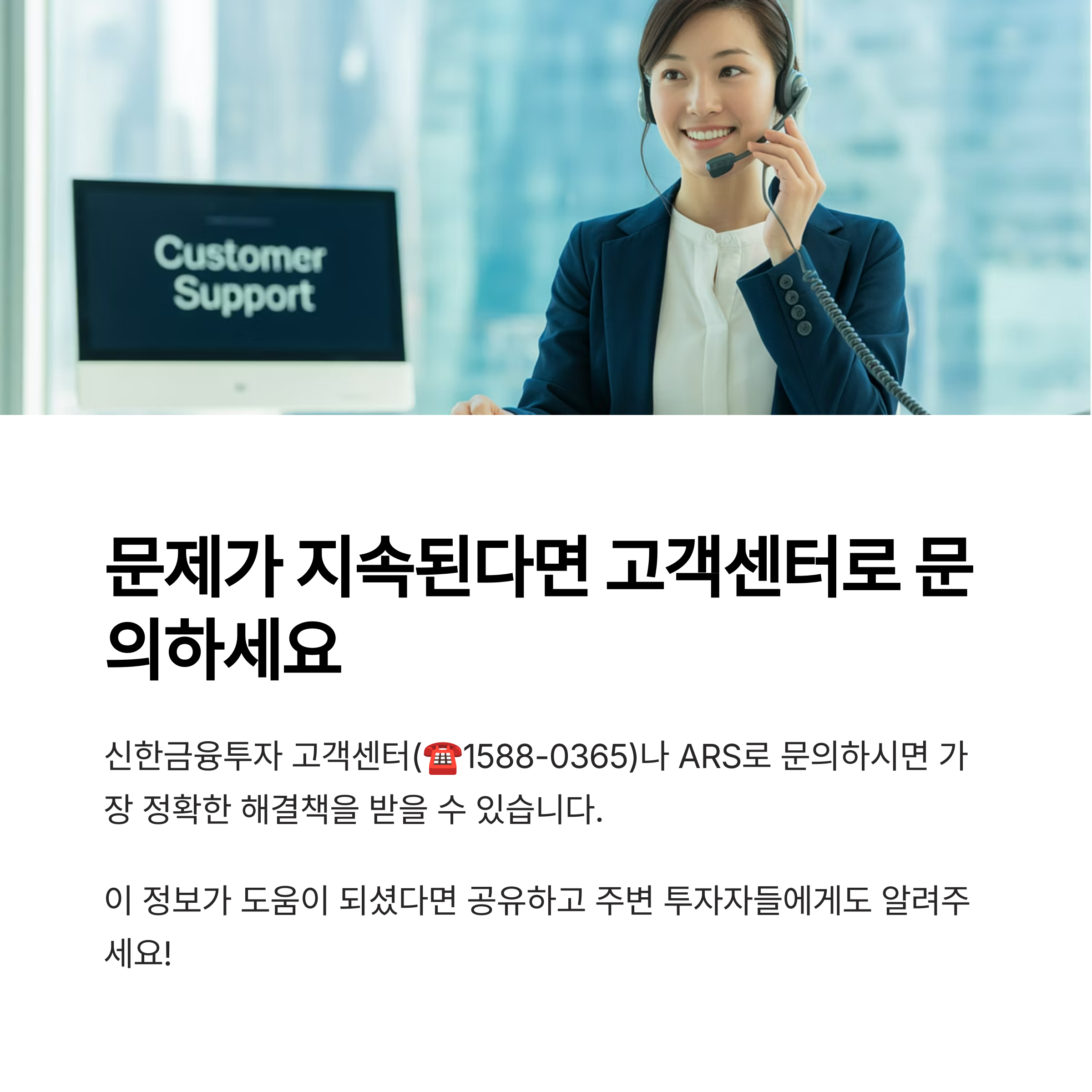 신한금융투자 고객센터(☎1588-0365) 또는