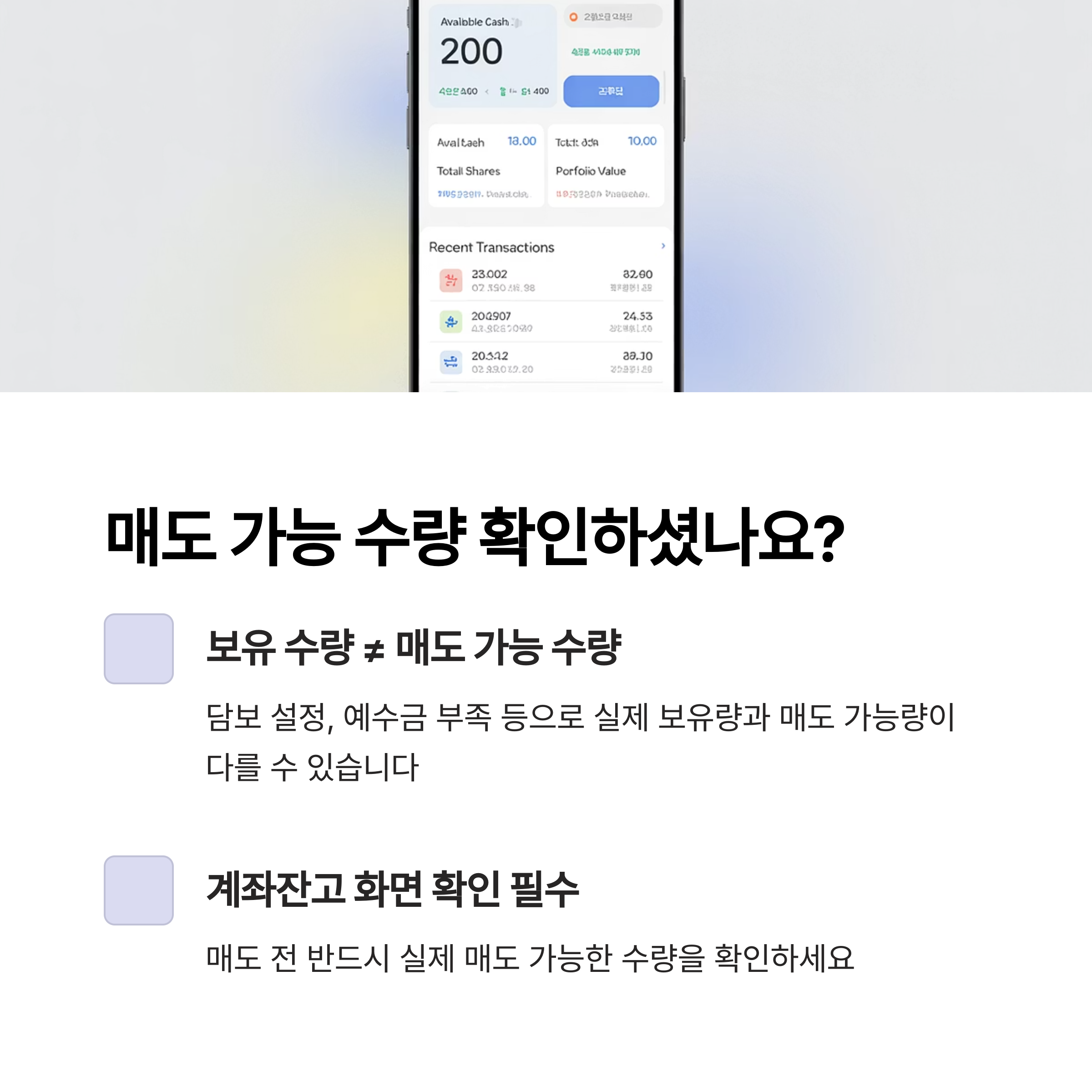 매도 가능 수량이 실제 보유 수량보다 작을 수 있습니다