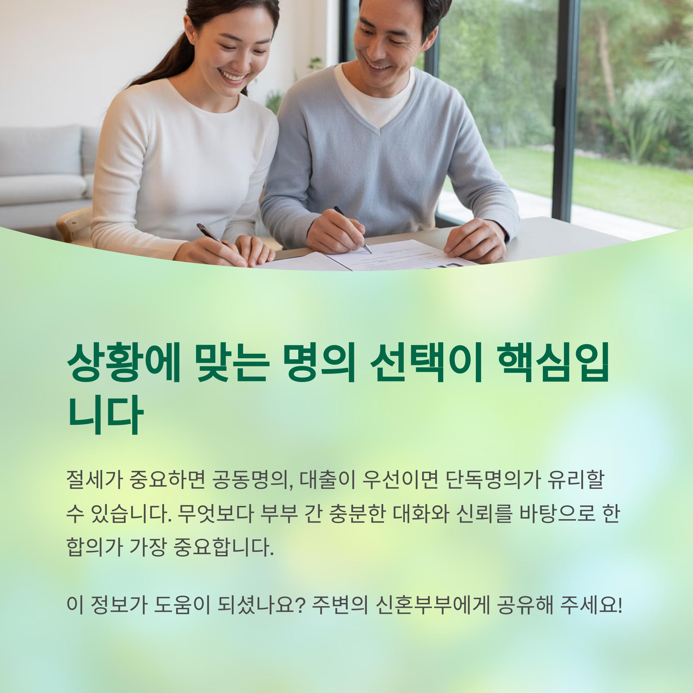공동명의든 단독명의든 어느 하나가 반드시 옳은 선택은 아닙니다.
