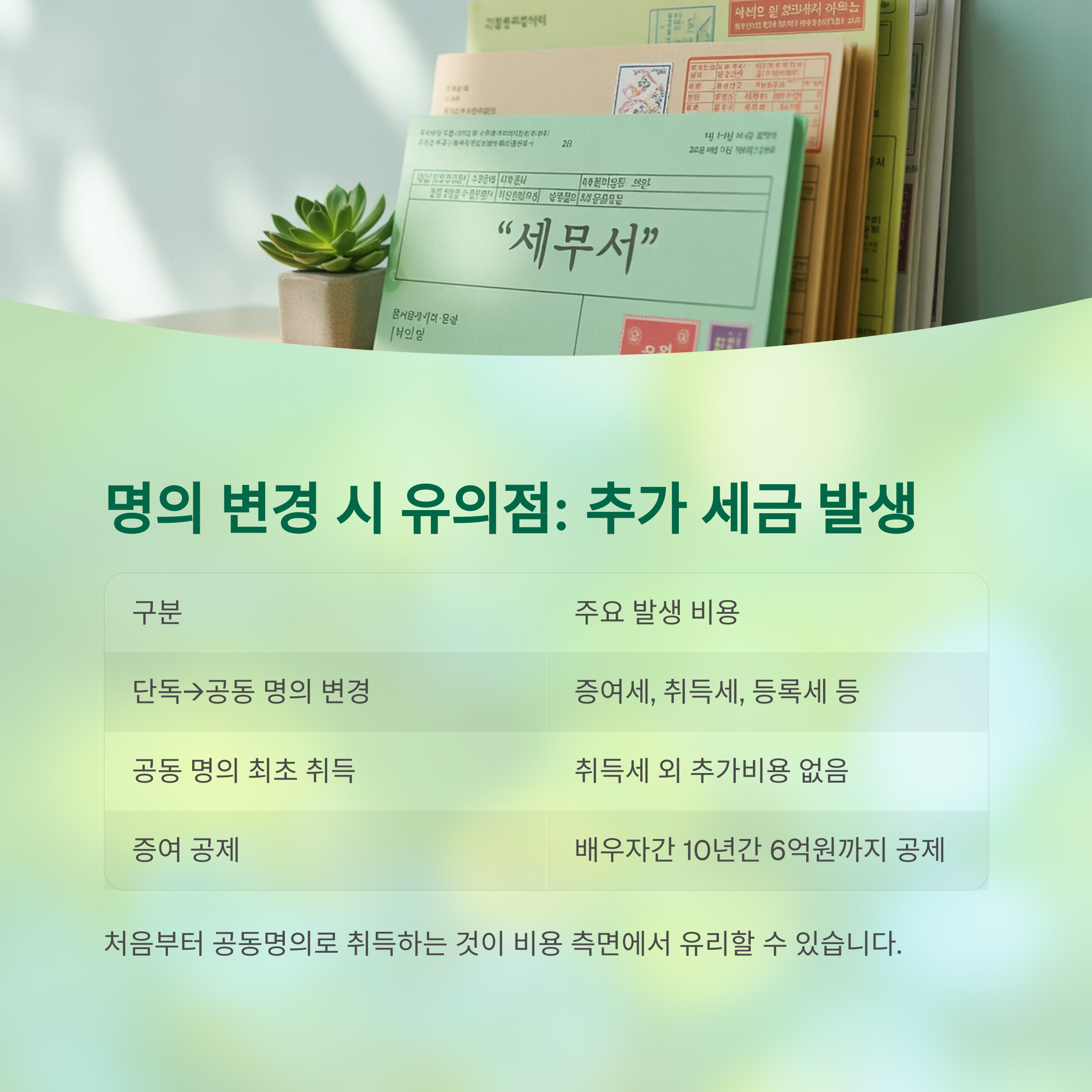즉, 처음부터 공동명의로 취득하는 것이 비용 측면에서 유리할 수 있습니다.