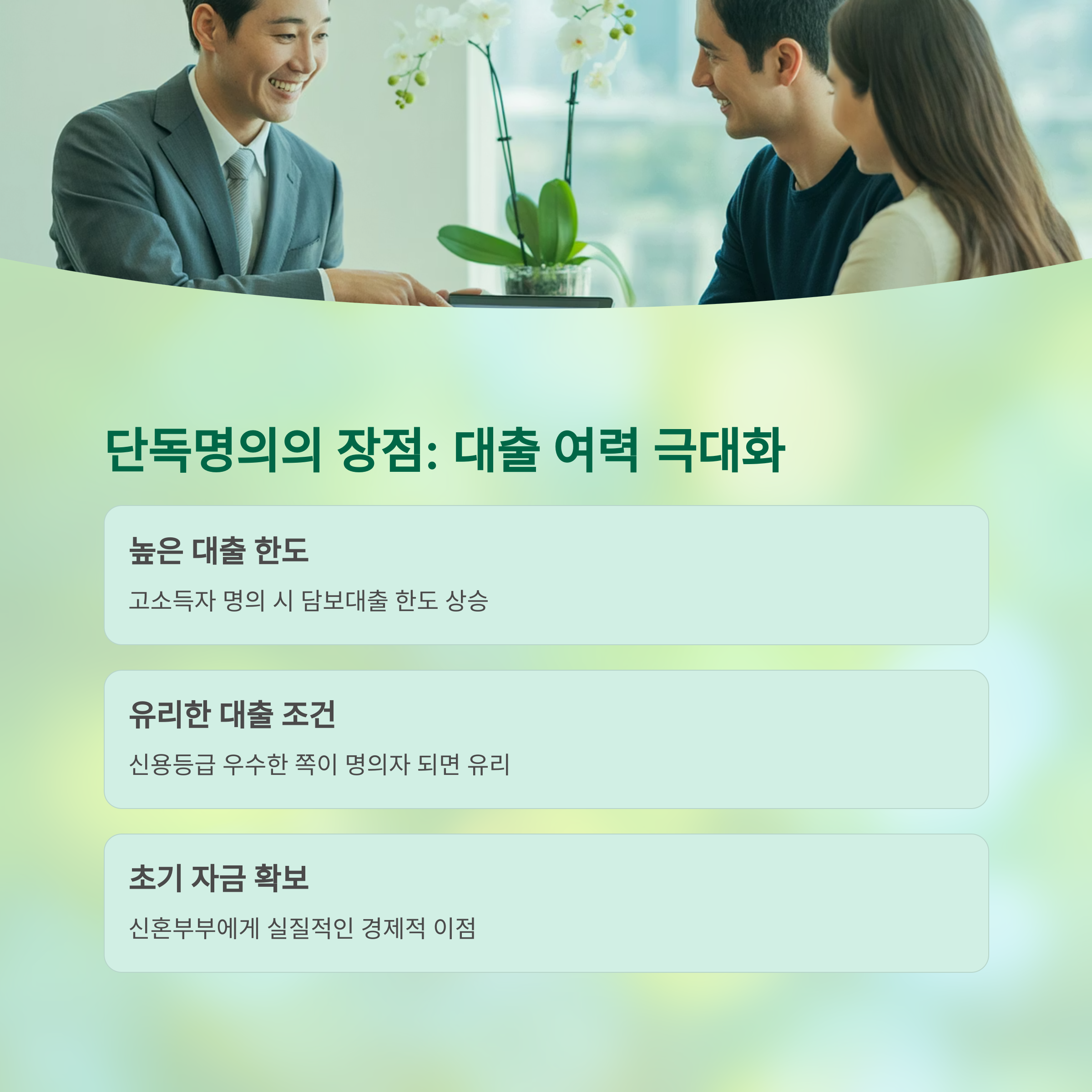 대출이 우선이면 단독명의가 현실적인 선택이 될 수 있습니다.