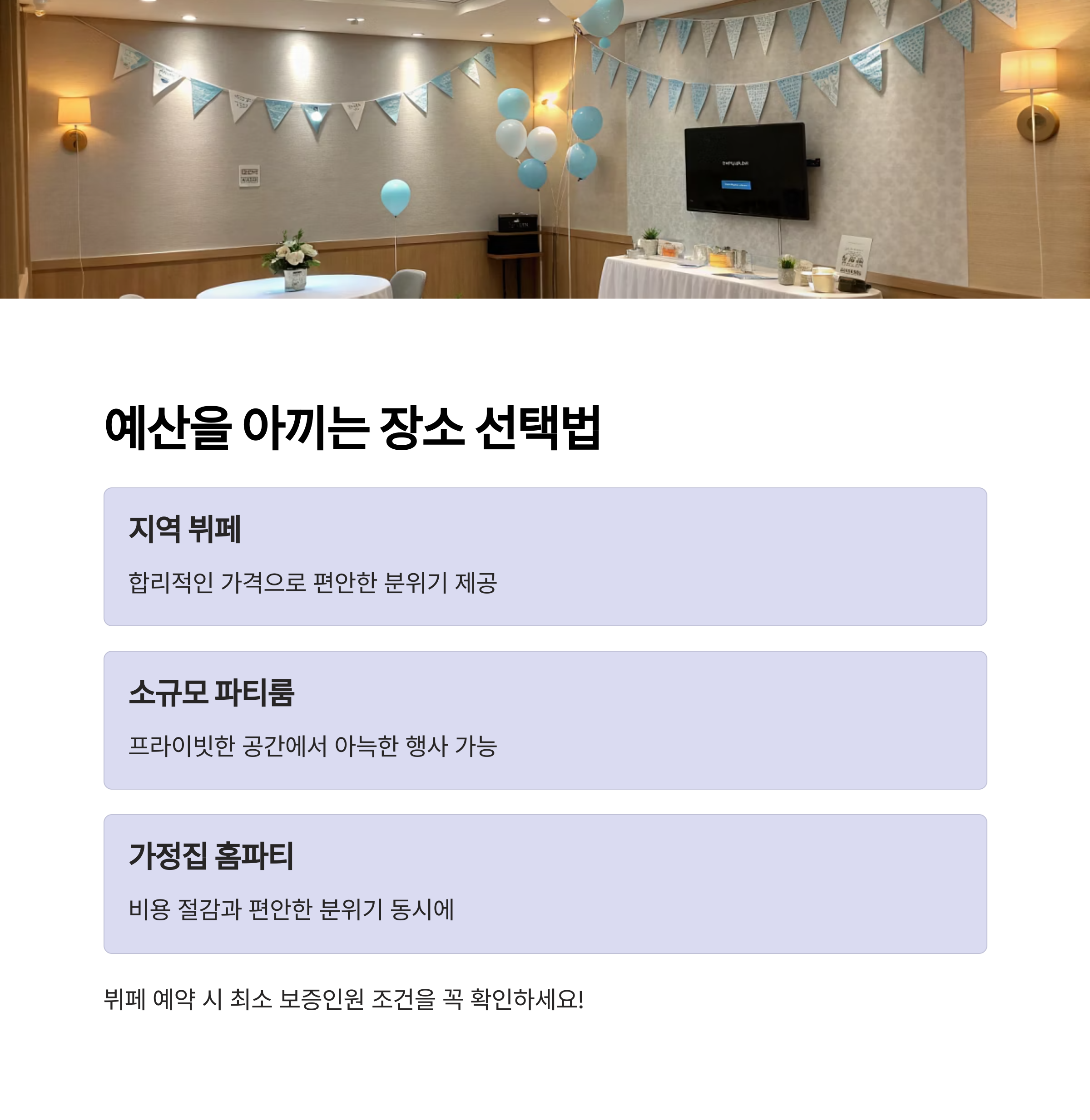 최근엔 지역 뷔페, 소규모 파티룸, 가정집 홈파티도 인기입니다.