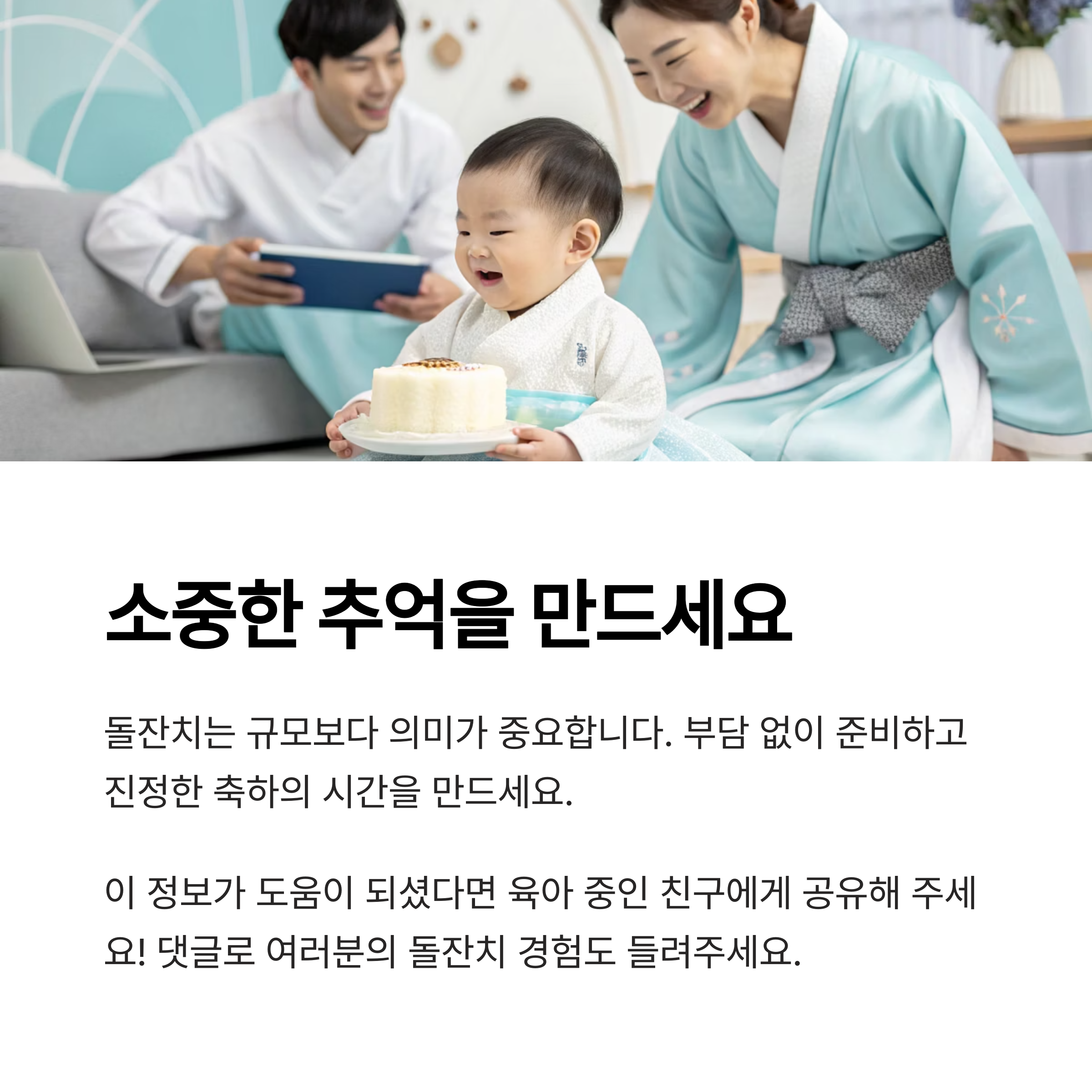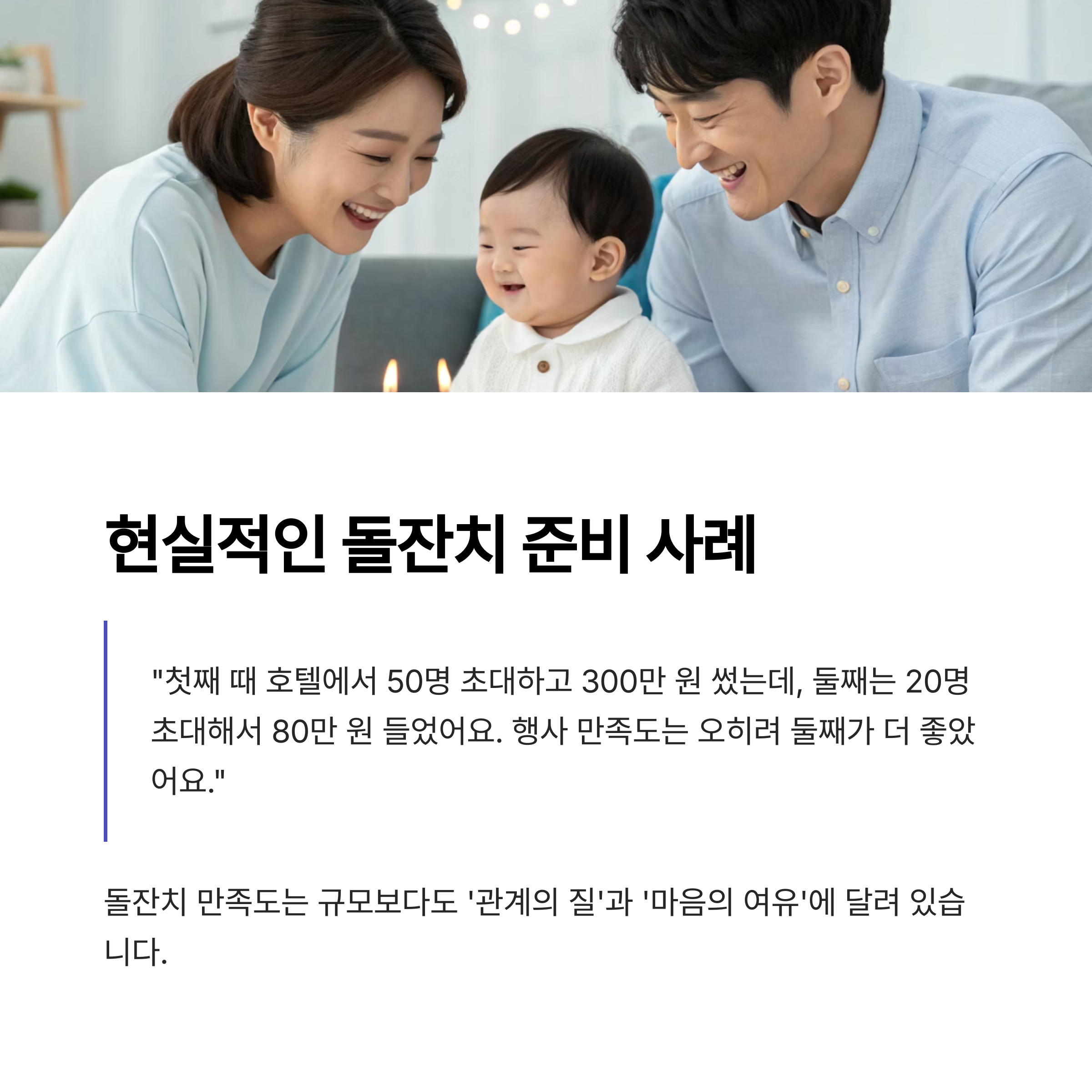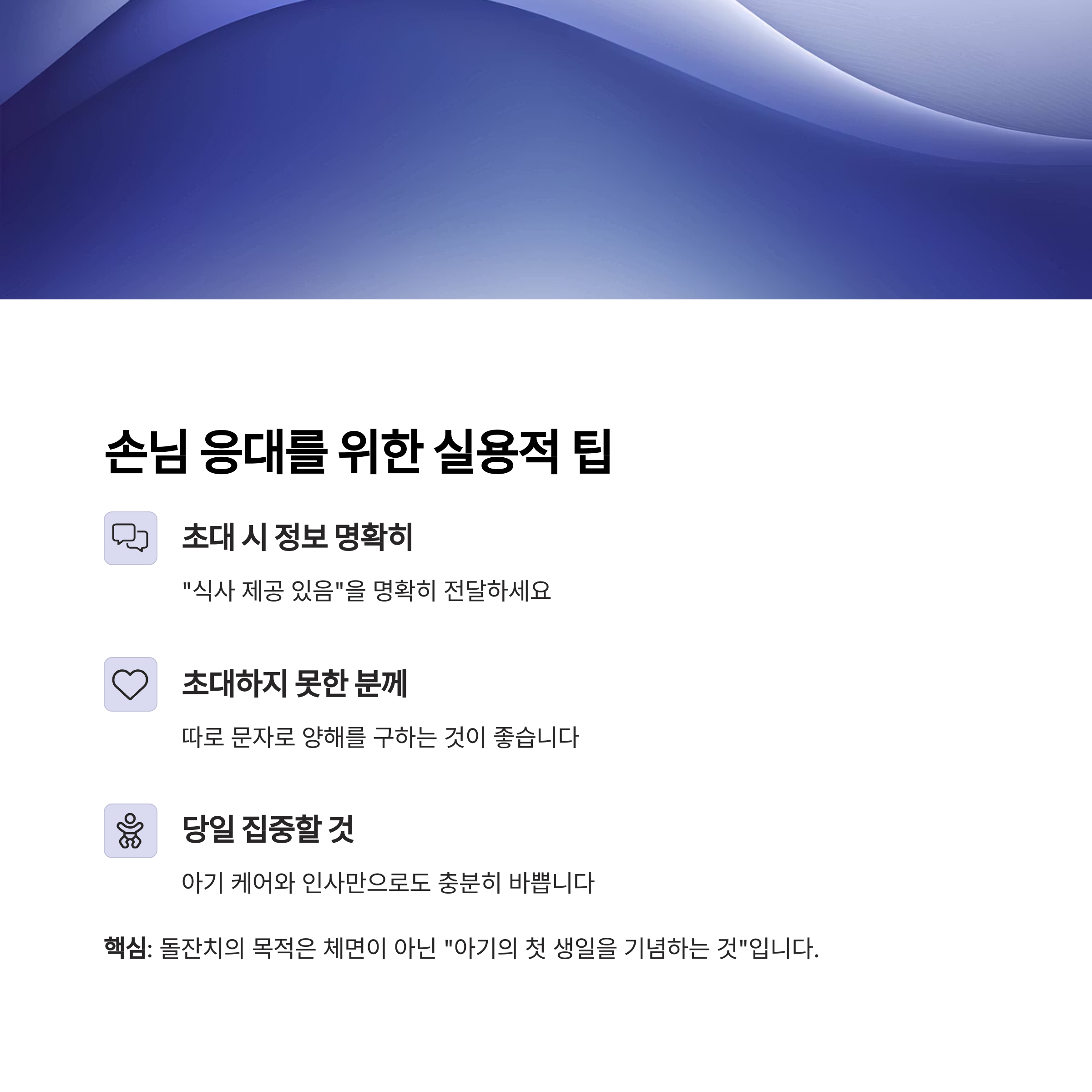 핵심: 돌잔치의 목적은 체면이 아닌 "아기의 첫 생일을 기념하는 것"입니다.