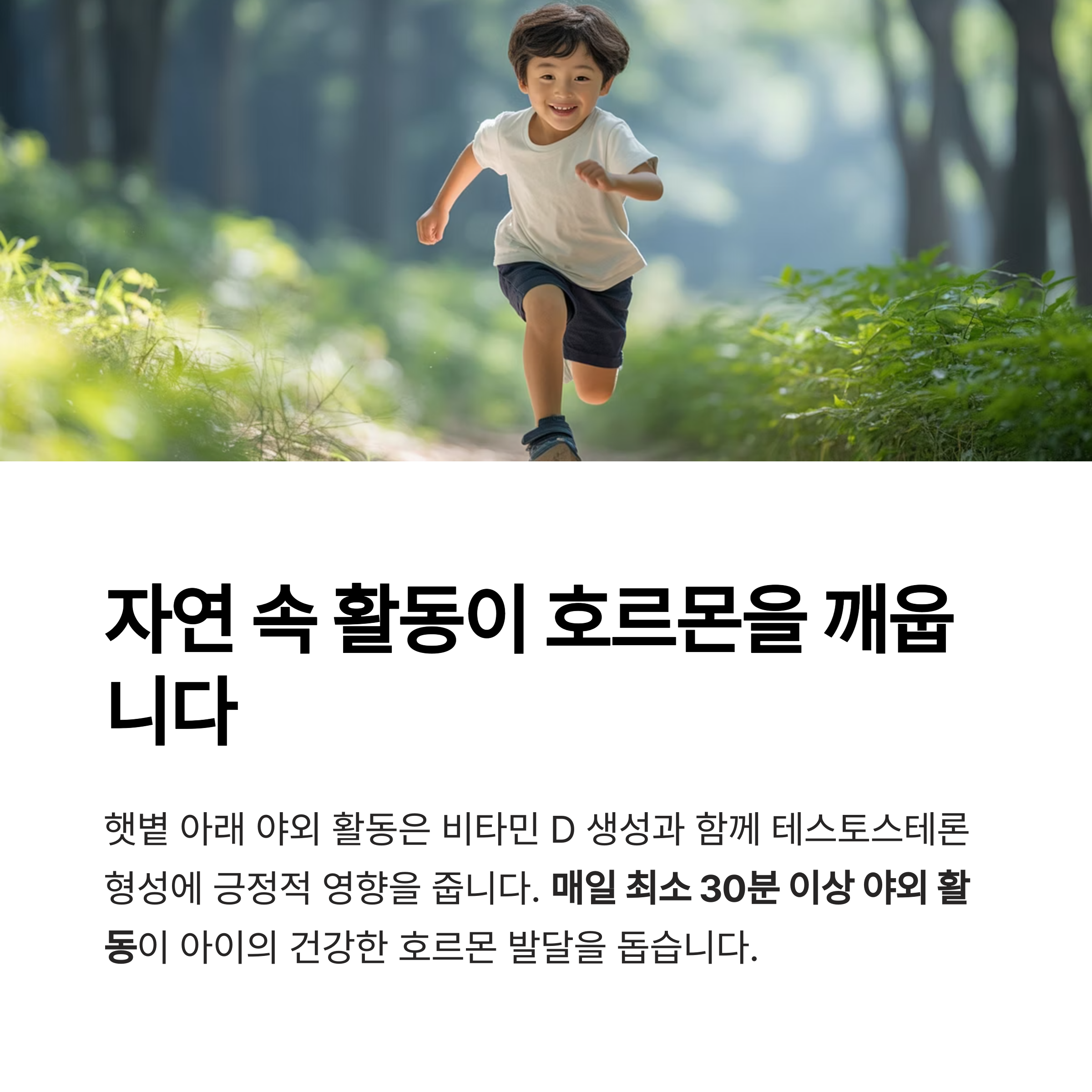 햇볕 아래에서 뛰어노는 활동은 비타민 D 생성과 함께 테스토스테론에도 긍정적인 영향을 줍니다