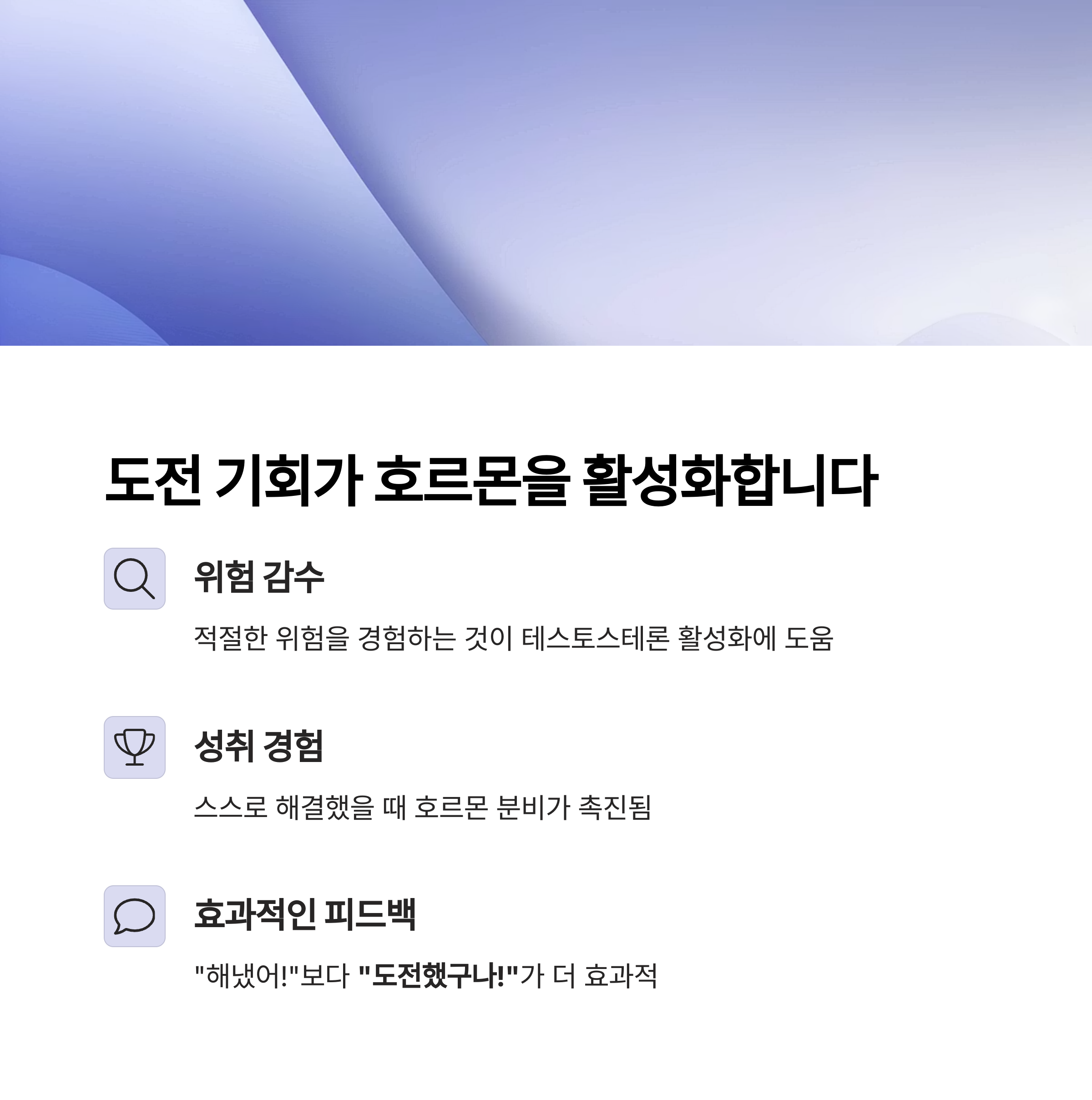 "해냈어!"라는 말보다 "도전했구나!"라는 피드백이 성장 호르몬에 더욱 자극이 됩니다