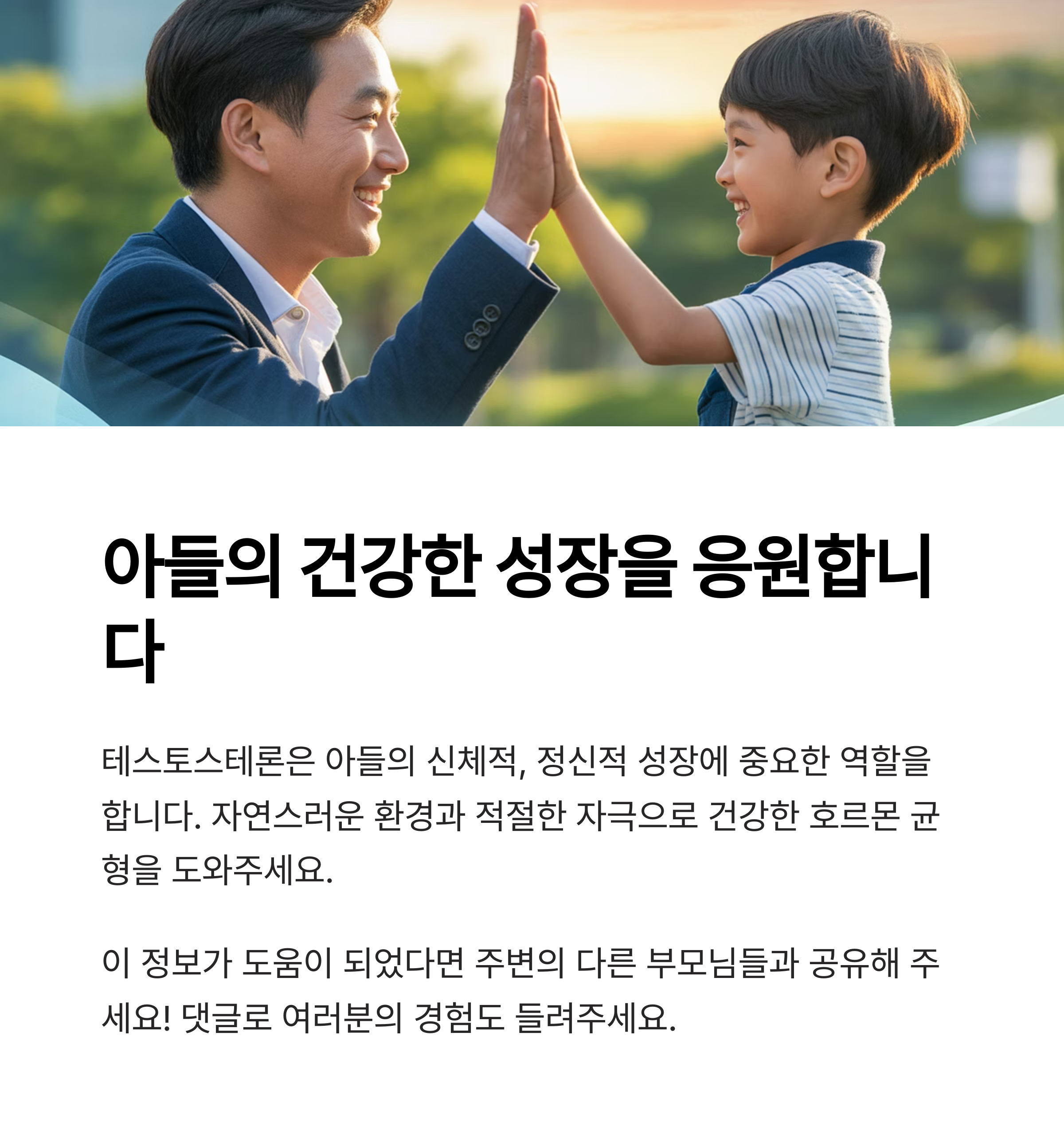 아들의 성장과 자립심 발달에는 호르몬 균형, 특히 테스토스테론 형성이 핵심입니다