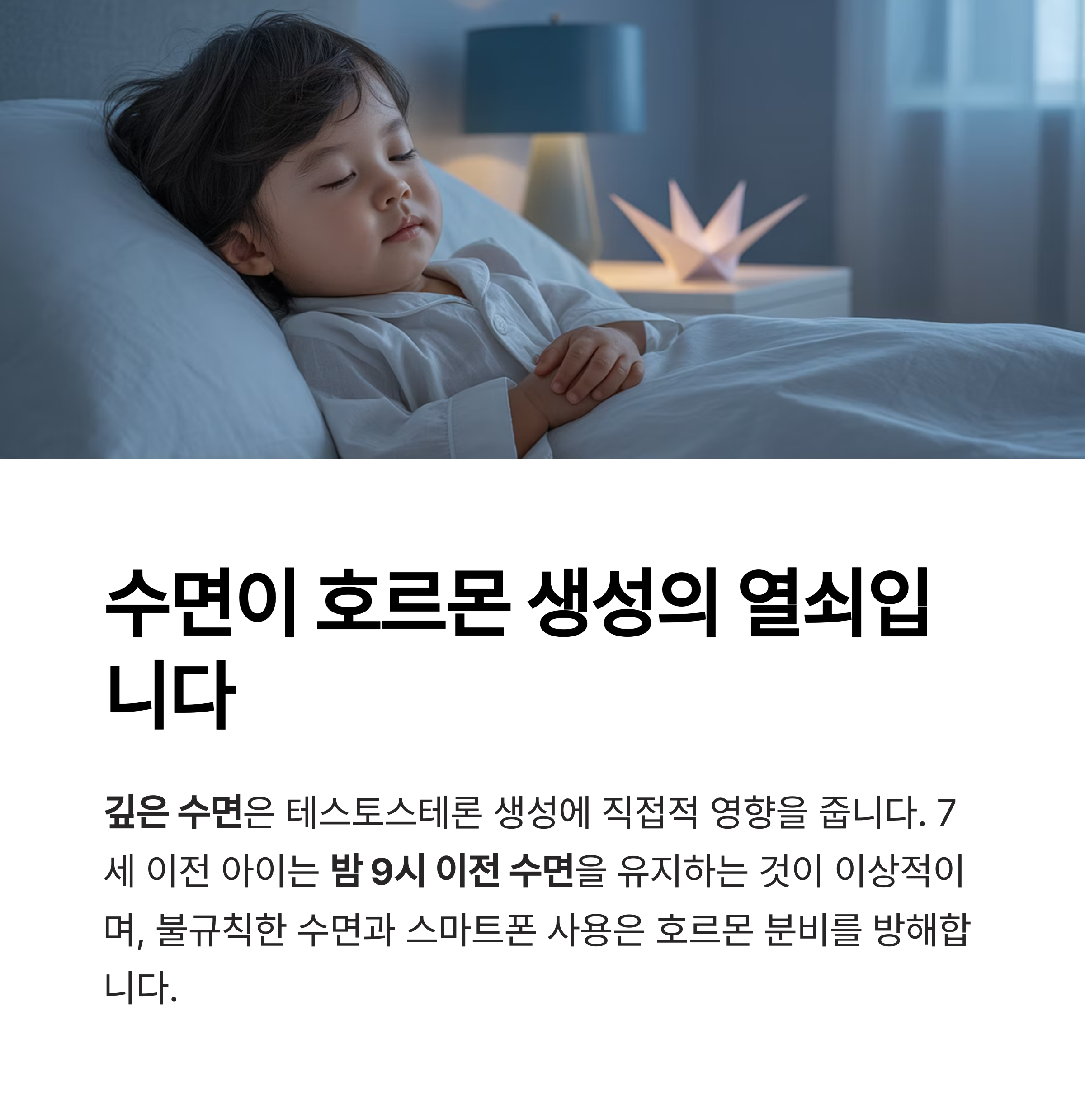 유아와 아동기의 깊은 수면은 테스토스테론 생성에 직접적 영향을 줍니다