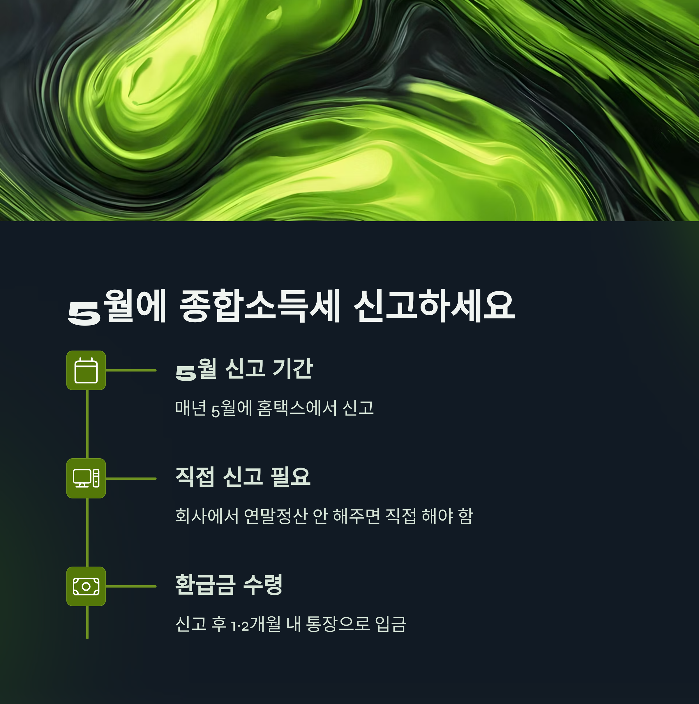 매년 5월, 홈택스에서 종합소득세 신고를 하여 숨겨진 돈을 찾으시길 바랍니다.