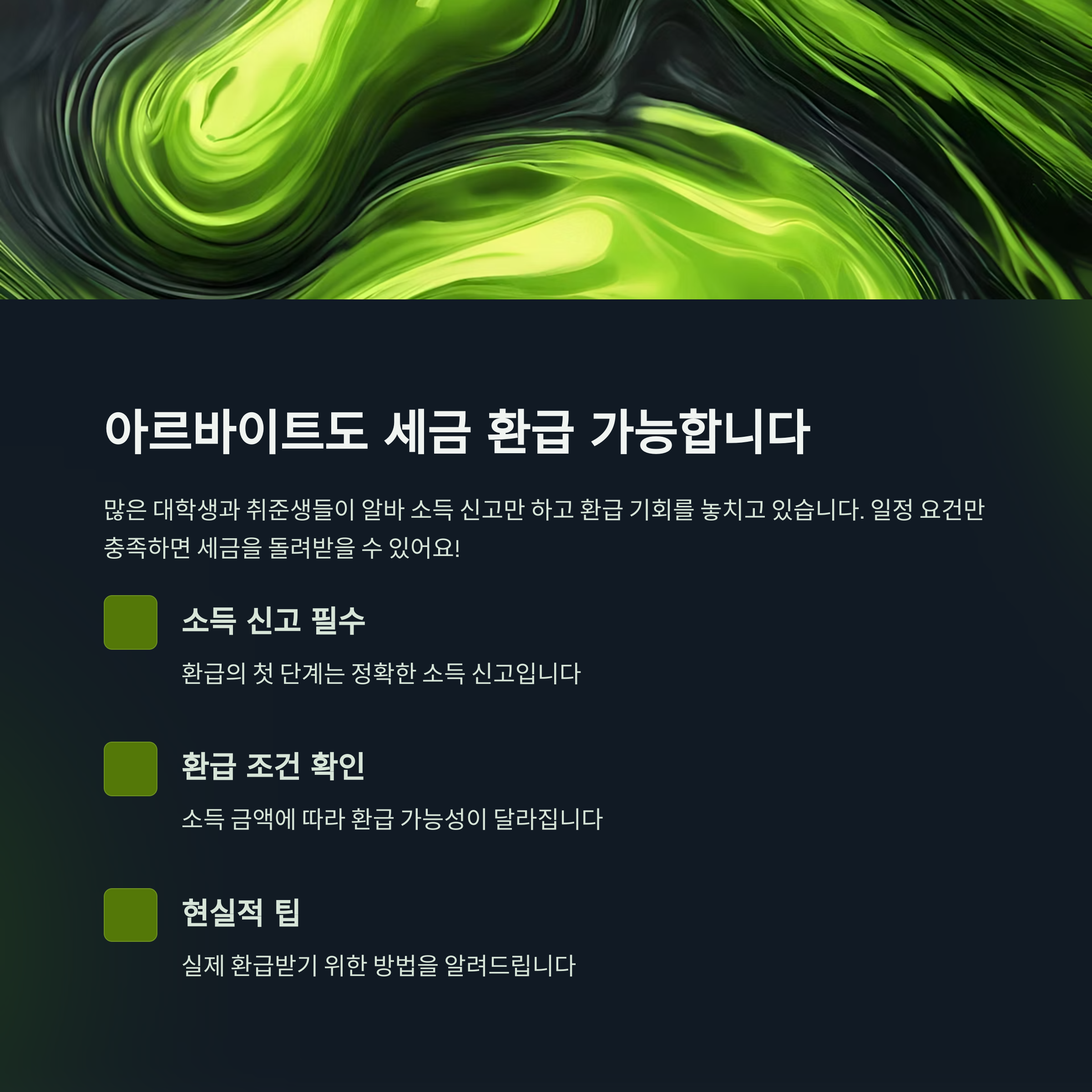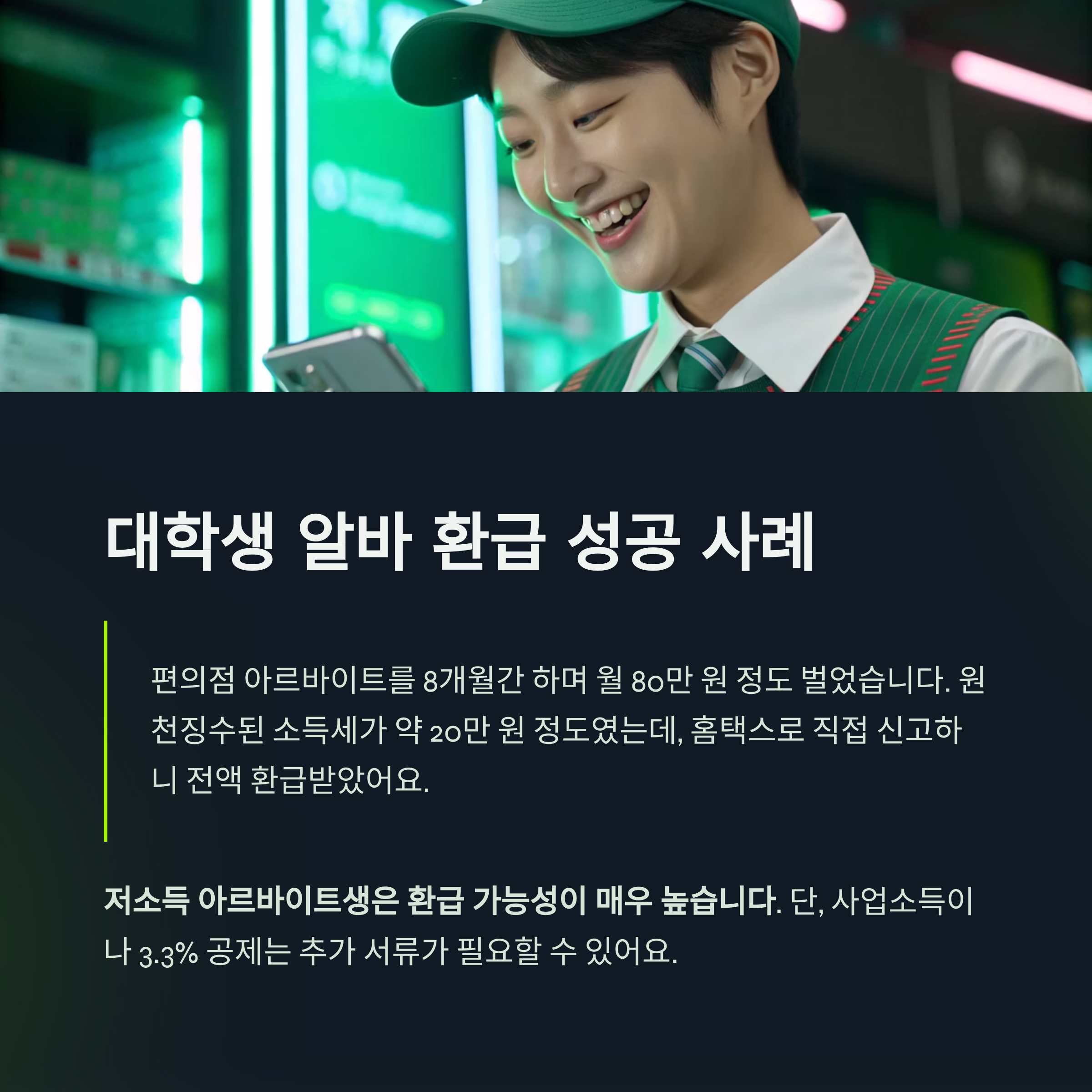 아르바이트로 벌어들인 소득도 일정 요건을 충족하면 세금 환급이 가능합니다.