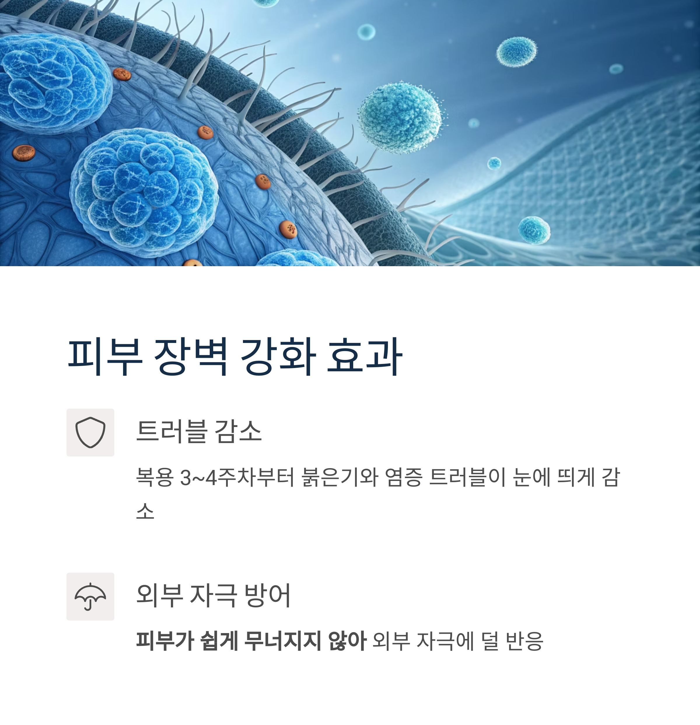 복용 3~4주차부터 붉은기와 염증 트러블이 눈에 띄게 줄어들었습니다.