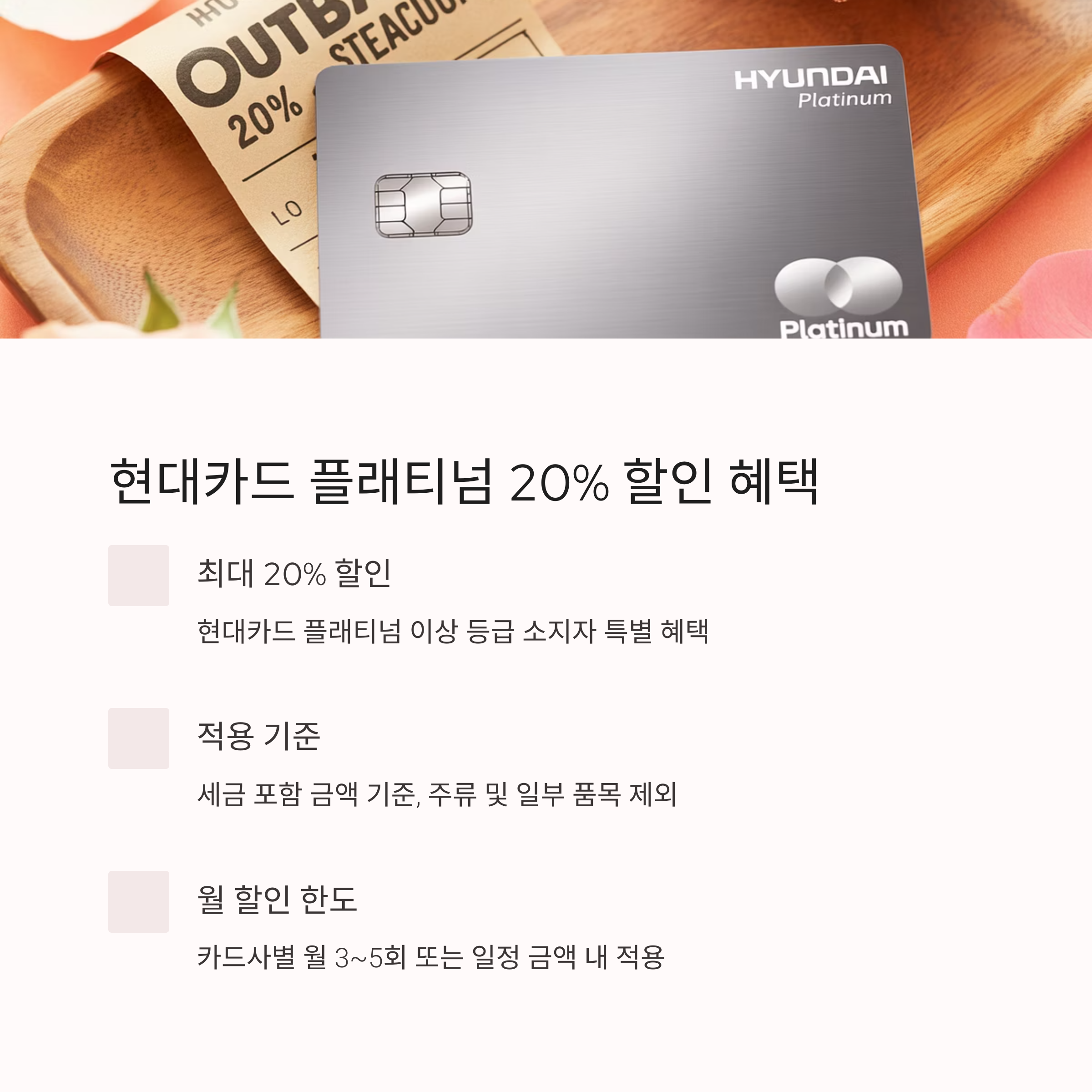 현대카드 플래티넘으로 누릴 수 있는 20% 할인 혜택