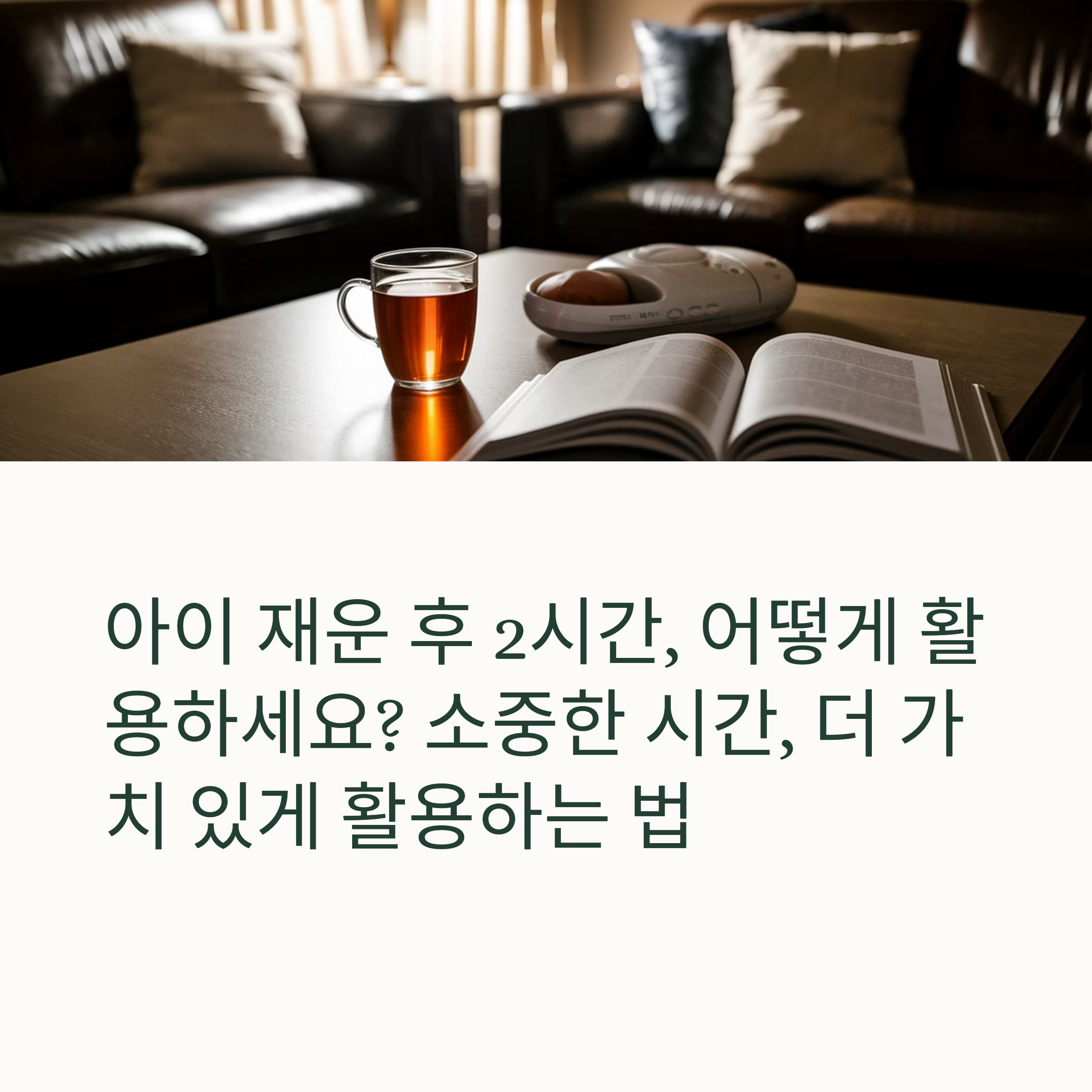 아이 재운 후의 시간은 다양한 방식으로 활용할 수 있습니다. 2시간의 일부는 생산성과 효율성 중심으로, 나머지는 자기 돌봄 시간으로 운영하세요. 자기 개발 활동과 심신 안정 활동은 삶의 만족도를 높이는 데 기여합니다.