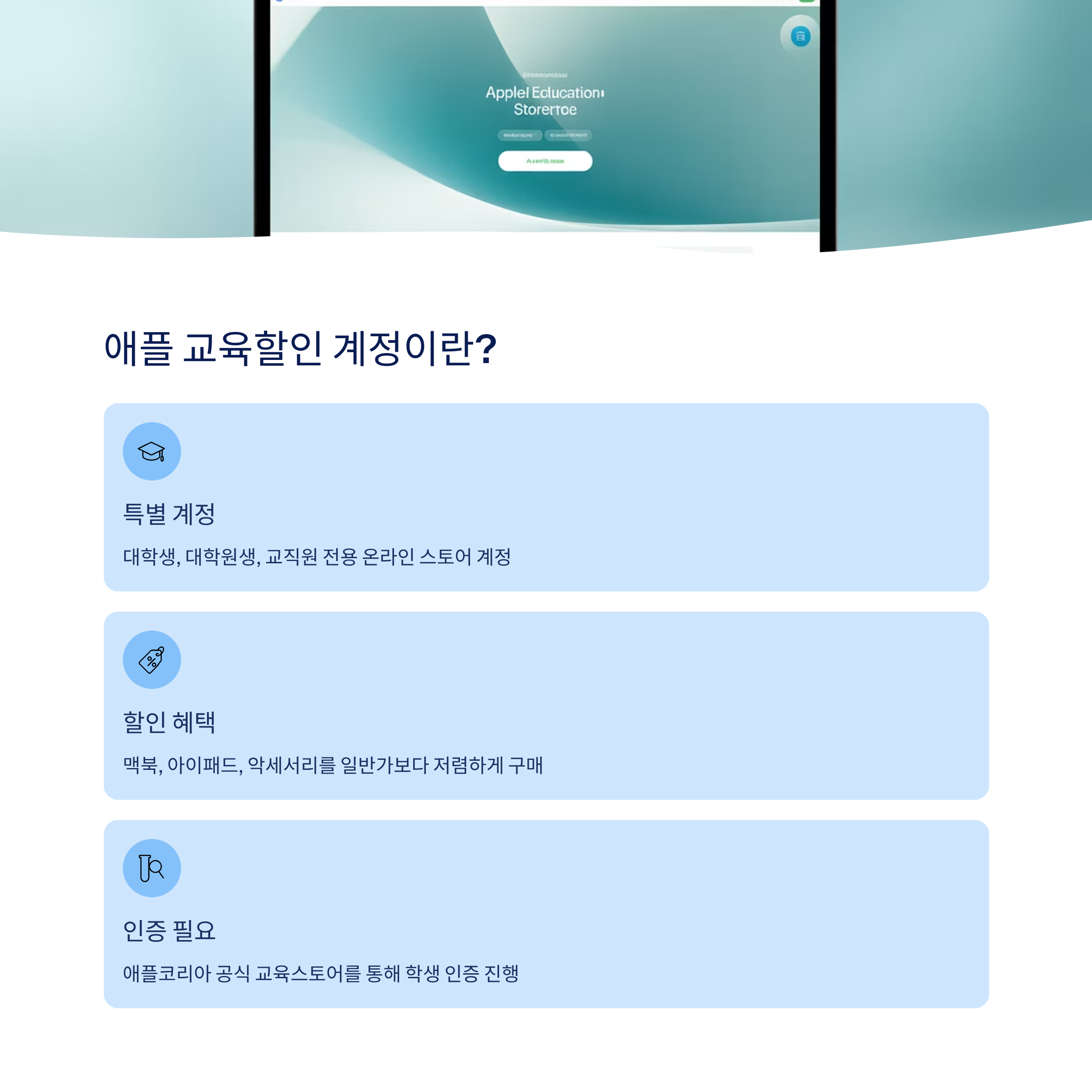 애플 교육할인 계정은 대학생, 대학원생, 교직원을 대상으로 한 특별한 온라인 스토어 전용 계정이에요. 일반 소비자보다 할인된 금액으로 맥북, 아이패드, 악세서리 등을 구매할 수 있죠.