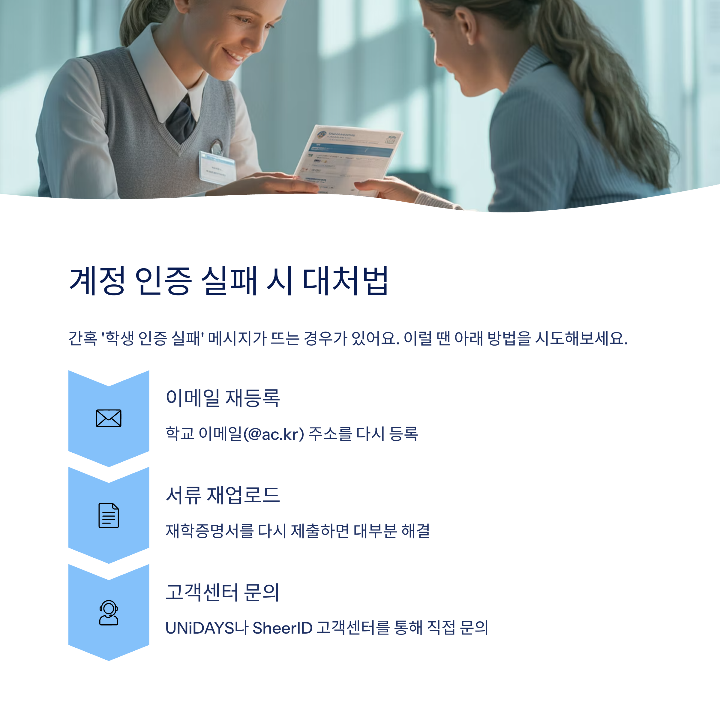 만약 계속 인증이 되지 않는다면 UNiDAYS나 SheerID 고객센터를 통해 직접 문의하는 방법도 있습니다.